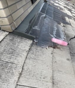 洗浄作業で根を張っていたコケが屋根の下地ごと剥がれ、屋根が真っ白になりました。市販の下塗り材であれば、下地の修復効果はありませんが、弊社が使用する下塗り材は建材に浸透し、瓦の地から固めて強化する下塗り材です。しっかり浸透するように仕上げ、次の工程に繋げます。