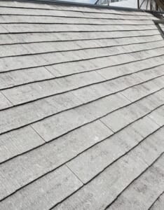 塗装工事では塗りの工程に入る前に、洗浄機で外壁と屋根の洗浄を行います。今回のお住まいは新築から20年以上塗装されていないお住まいですので特に屋根のコケがすごく目立っていました。屋根にコケが生えるのは乾燥しきらず水分が滞留している証拠になります。洗浄作業の際、しっかり除去することが塗料の耐久性を上げるために重要になってきます。