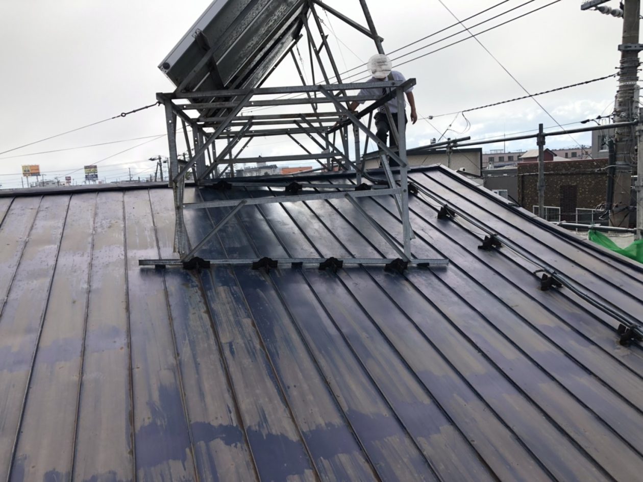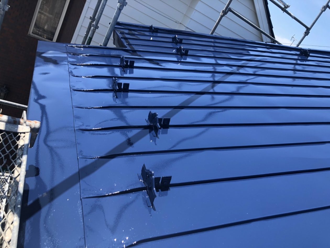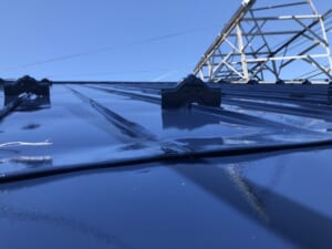 浜風の影響で、サビが広がっていた屋根が丁寧な下地処理と板金張替・下地処理を行ったため、上塗りに関しても漏れ・ムラがでないよう丁寧に行いました。結果遠くからでもわかるくらいの見違えるような光沢の屋根に仕上がりました。お客様からも「ピカピカになってうれしい」と言っていただいたナスコンの屋根を見ていただきたいです。