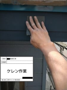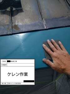 海が近い立地で浜風のあたる部分が特にサビがでていたため、ケレン(サンドペーパーなどで表面のサビなどを落とす作業)で対応可能な部分は丁寧にケレン作業を行いました。下地処理は、仕上がりと長期の安心の為に大切な工程になるので、特に気を使って丁寧に処理を行いました。