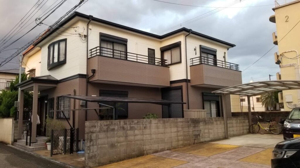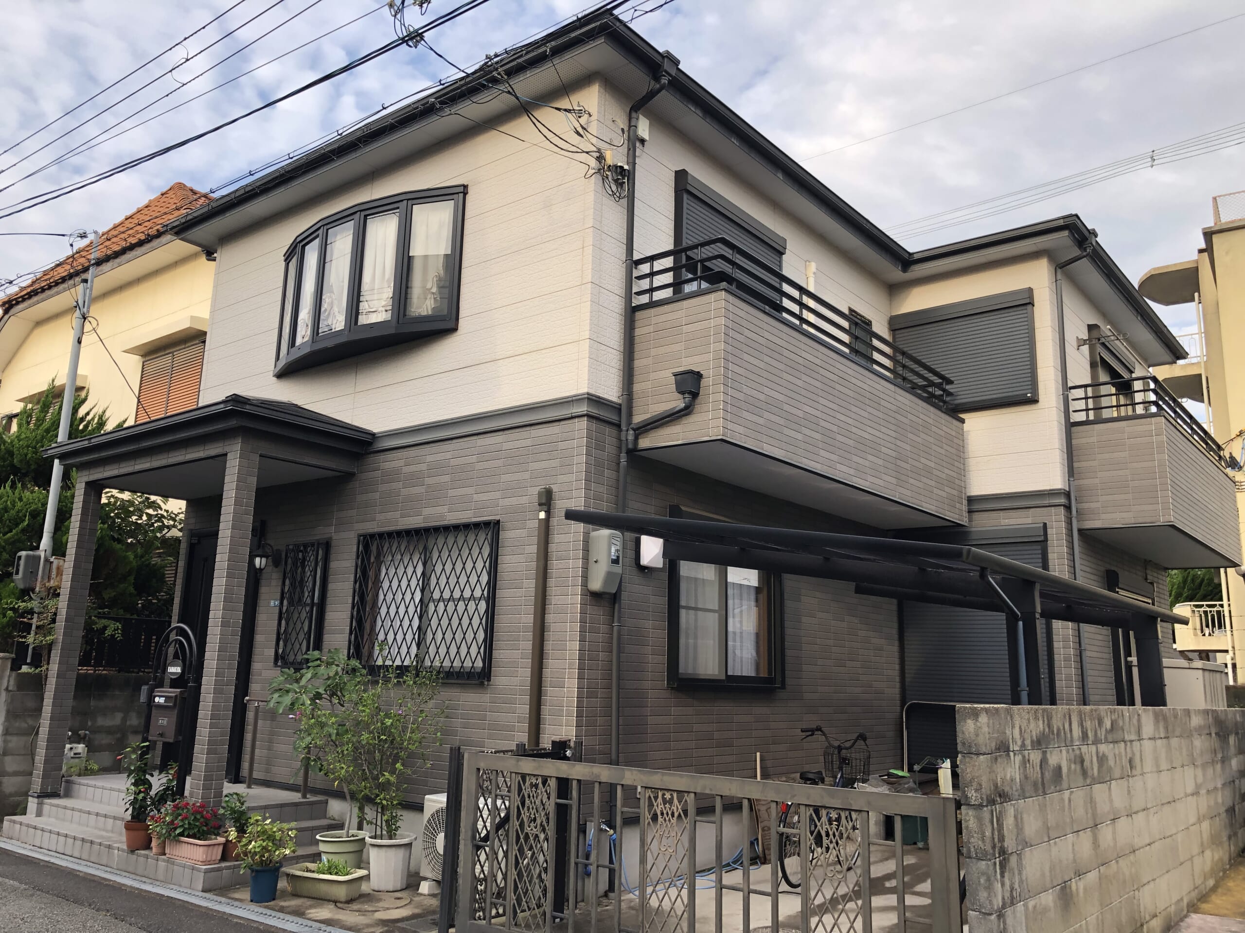 大阪府池田市/洋風戸建ての外壁塗り替え(ベージュ・ブラウン・シリコン系)・屋根塗り替え(ブラウン・シリコン系)