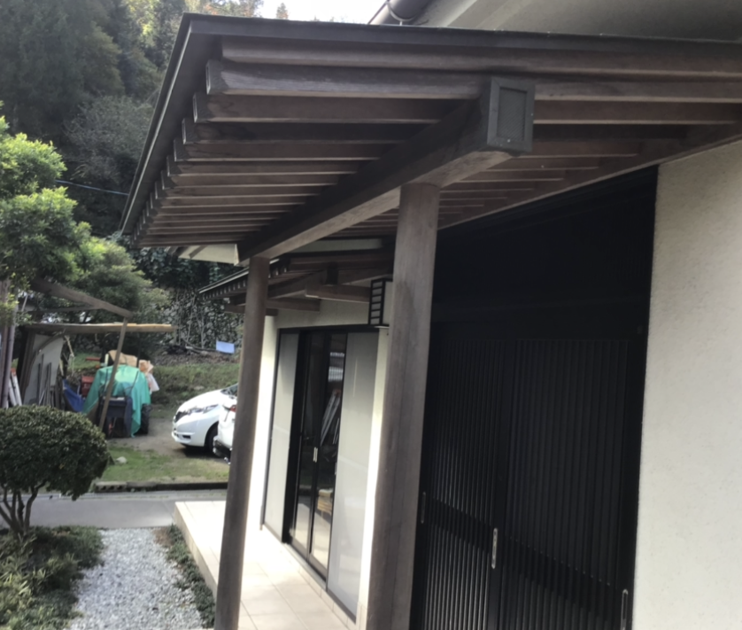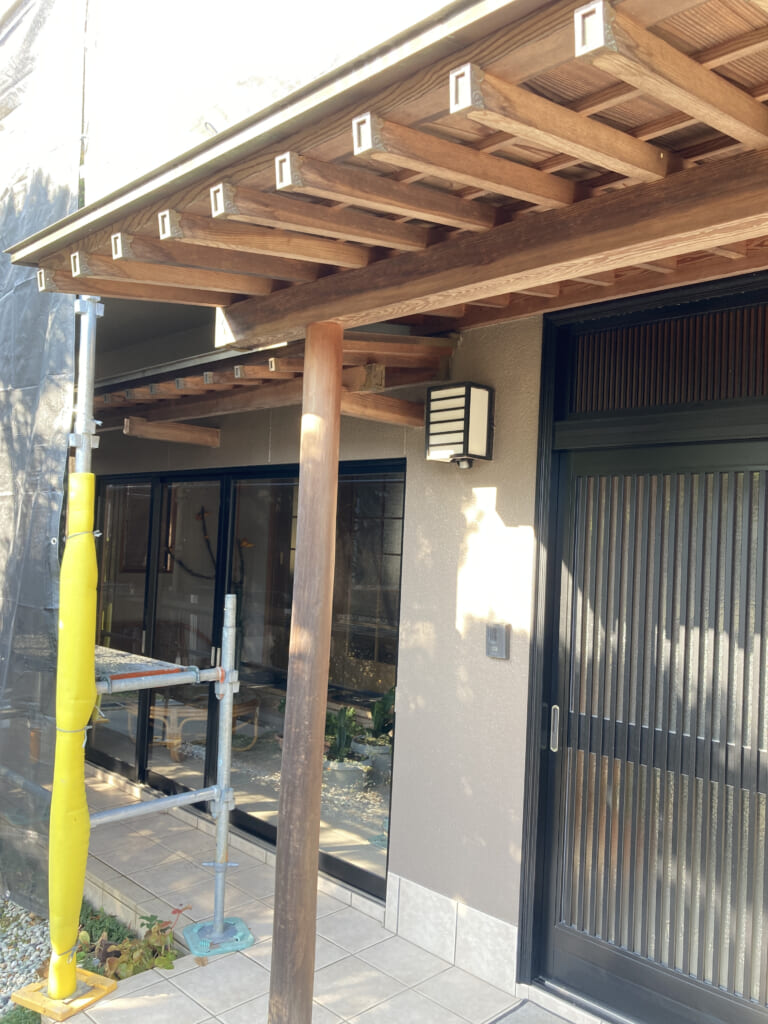 木部の塗装時は色を2パターンお持ちし、試し塗りしながらご夫婦様と色決めをしました。明るめの色をお選びになり、木目がしっかりと活きた仕上がりにご満足いただけました。