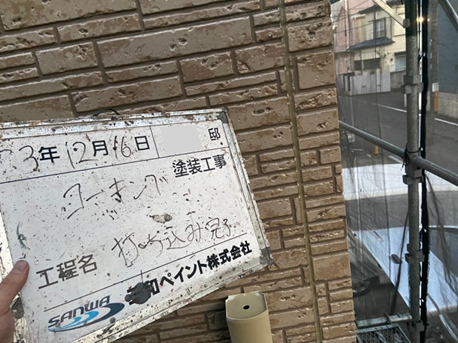 塗装前は経年劣化により細かく亀裂が入ったり、劣化してコーキングが痩せてる箇所が見受けられました。まずは元々のコーキングを丁寧に撤去し、両脇に養生を行います。この養生作業が最後ラインを綺麗に出す重要な工程ですので、入念に行いました。次にコーキングの密着性を高めるためのプライマーを塗布しシール材を慎重に打ち込んだら、ハケを使い表面を整えました。