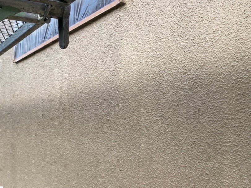 洗浄前は外壁が黒カビに汚染させれいました。下塗り塗装をする前にきちんと付着した塵やホコリを落とさないと、建材と塗料の密着が悪くなり剥離の原因となります。その為、できる限り高圧洗浄で汚れを丁寧に除去しました。