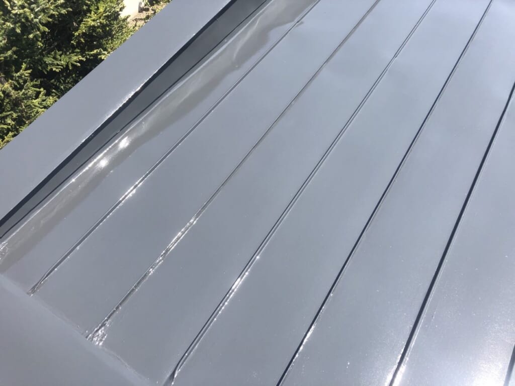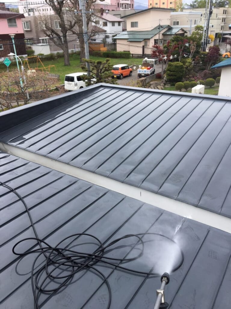 建ててから初めての塗装ということで、金属トタンに傷・サビなど発生していた為、その部分に注意し下地補修を行い施工をいたしました。また、併せて洗浄工程を行うのですが、ここでもチリや埃を飛ばすことによって塗料の密着を良くしますので、大切な工程です。