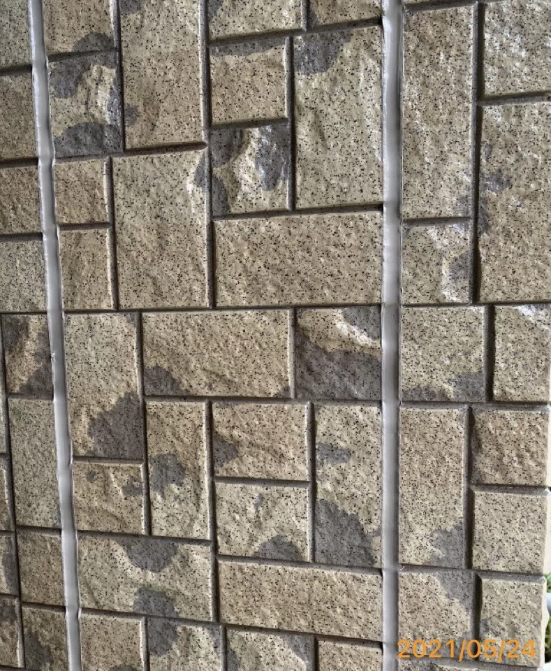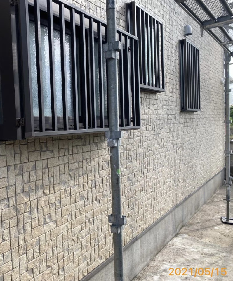 既存のコーキングは割れや厚みが減少している状態でした。ですので傷んだコーキングを撤去できる部分は撤去し、今回は外壁の色味に合わせたコーキングを打ちました。外壁の耐久性を実現するためにも大事な作業ですので、丁寧に行いました。