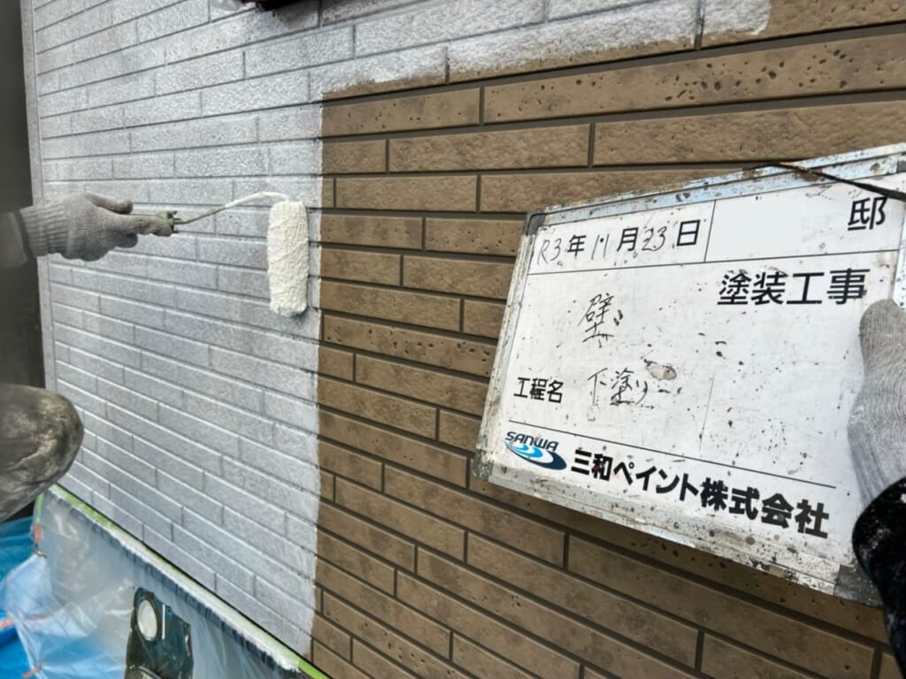 下塗り材をしっかりと丁寧に塗り込んでいるため、上塗りの密着効果を高め効果も十分発揮されるように仕上げていきます。