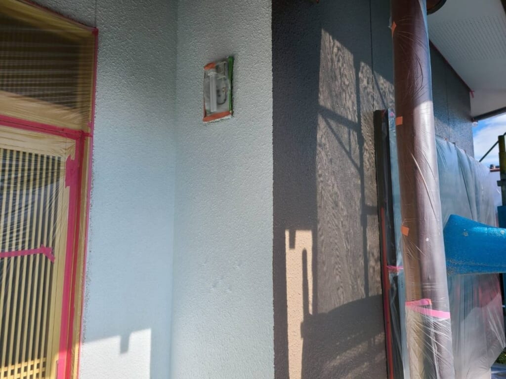 外壁の上塗りは塗りムラが出ないように塗膜の厚みを均一に保つこと、上塗りの膜厚がしっかりと付くようにすることを意識しました。また、塗り残しなどがないように作業毎に確認作業も入念に行いました。全体のツヤ感もあり、新築のような仕上がりになりました。