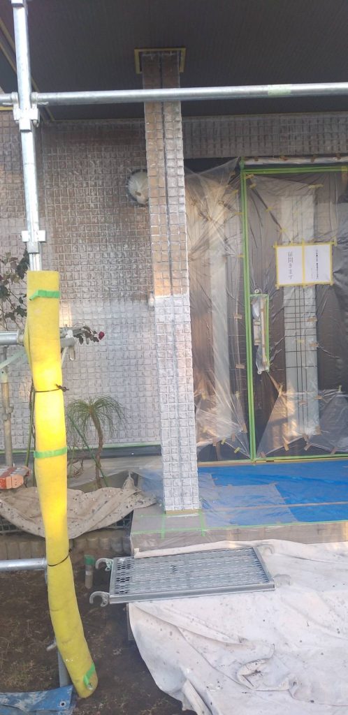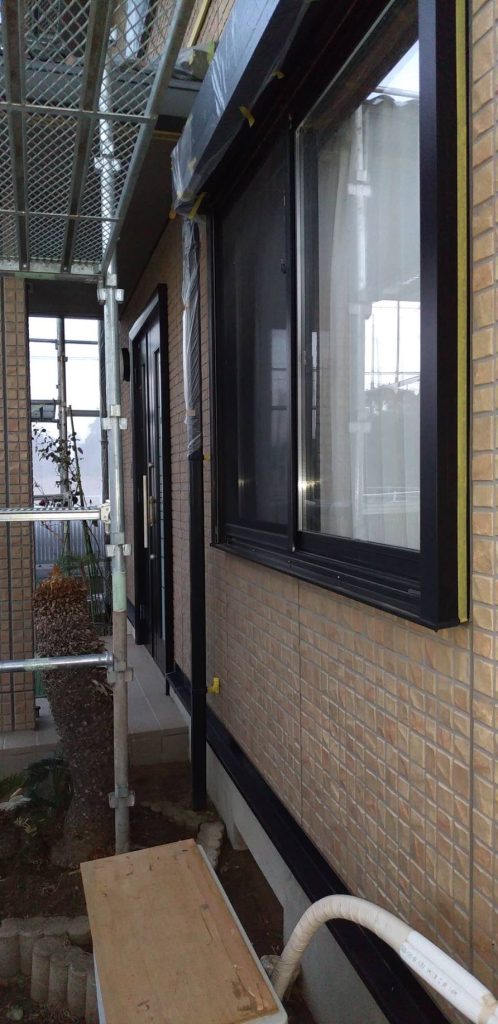 洗浄前は外壁が排気ガスでかなり汚れていました。下塗り塗装をする前にきちんと付着した塵やホコリを落とさないと、建材と塗料の密着が悪くなり剥離の原因となります。その為、できる限り高圧洗浄で汚れを丁寧に除去しました。