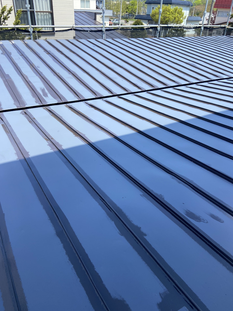 屋根中塗りを丁寧に