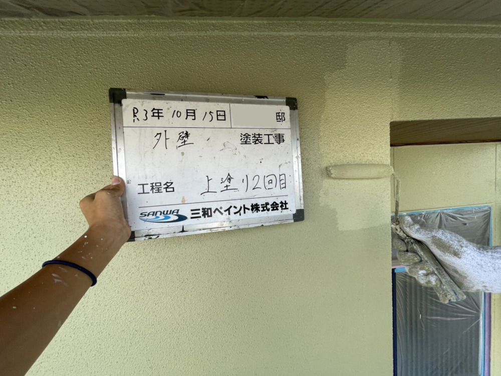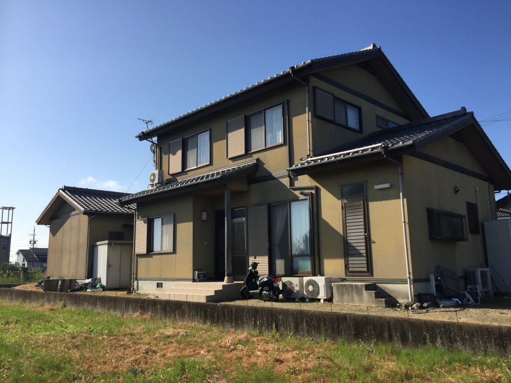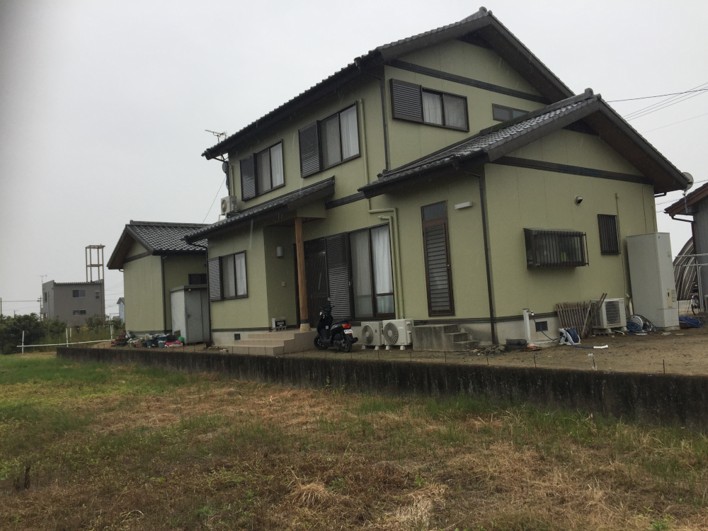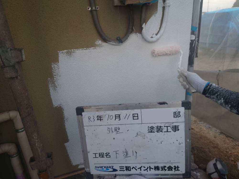 噛み合わせ部分に新築時のリシンのネタ(骨材)が残っているため下地処理でスクレーパーを使いしっかりと除去しないとその部分に塗料が残り上塗りの仕上りが悪くなります。