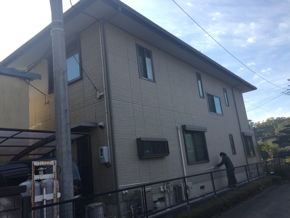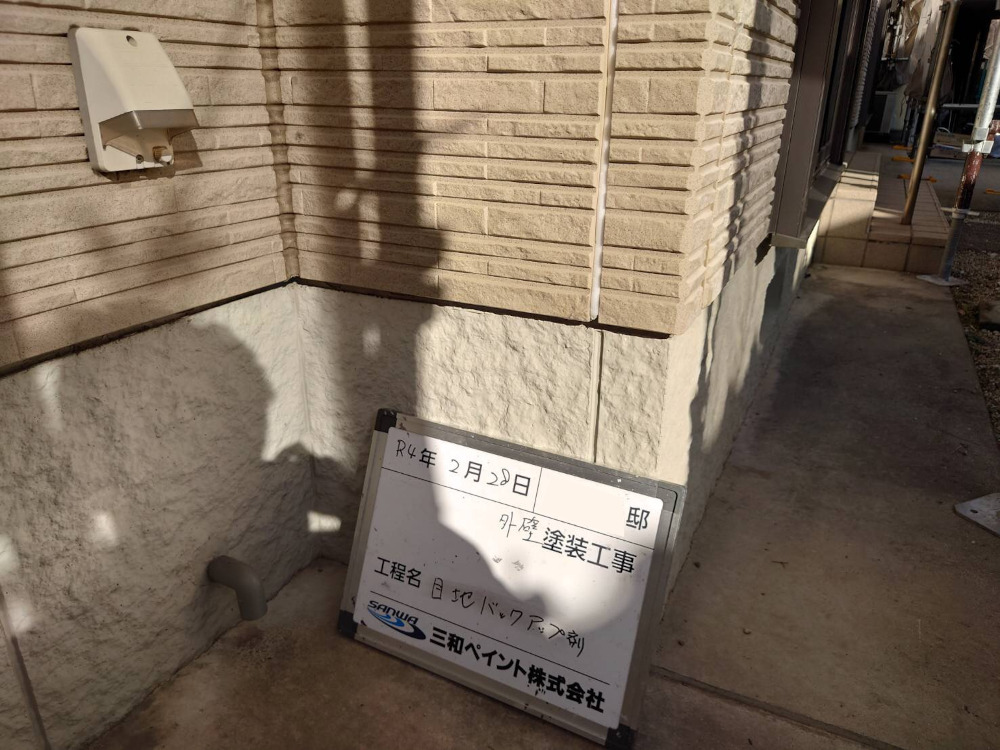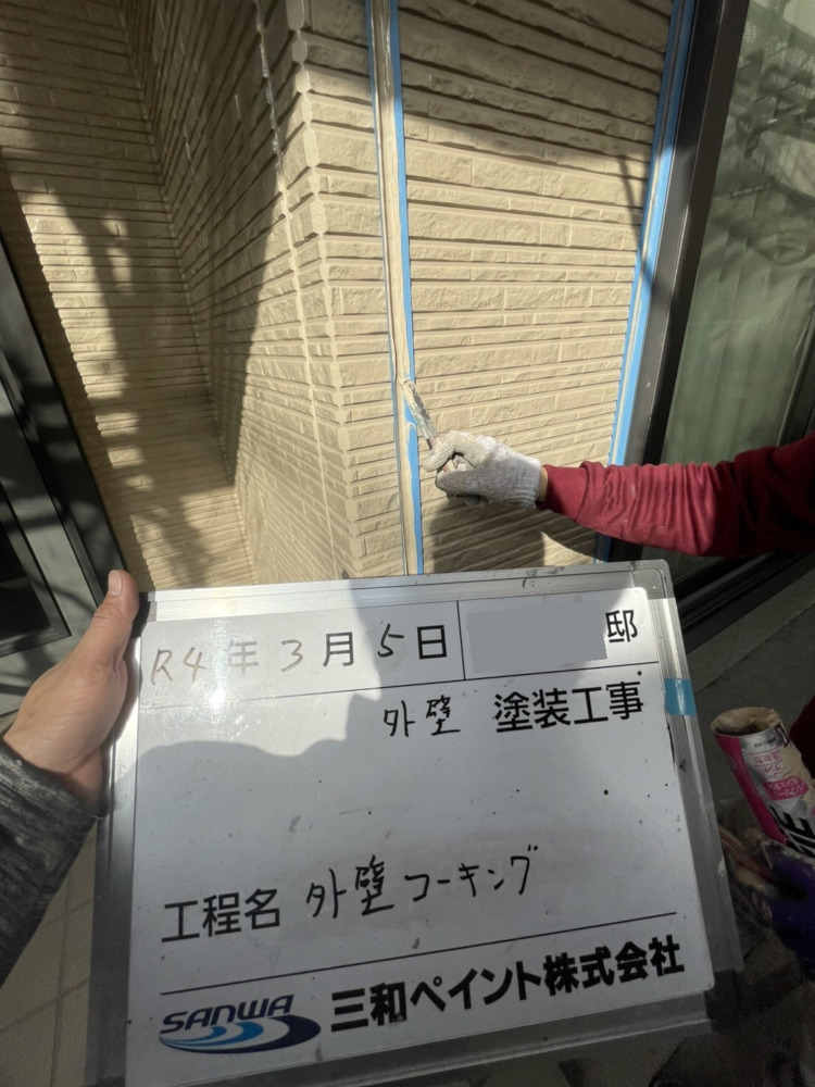 浸透性と付着力のたかい新製品のエポキシアクアを採用させて頂きました。また、従来の下塗りは白色で仕上げ色に少し干渉しましたがエポキシアクアは塗った直後は白色ですが乾燥後、透明になる為、仕上りの色が狙い目通りとなります。