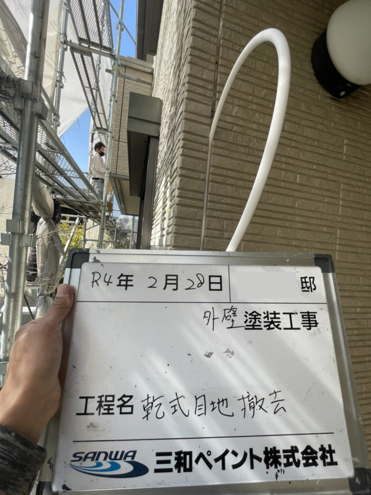 乾式目地は新築時のコストダウンで一部メンテナンスフリーを売りにセキスイハウスの一部で採用されていますが気密性、クッション性も悪くメンテナンスフリーでもありません。そこで今回は湿式目地へと交換させて頂きました。