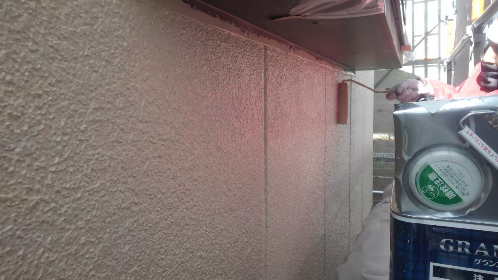 下塗り材料は外壁塗装をする上で壁と塗料が直接密着する重要な工程となります。そして外壁下塗りの工程で均一に塗装ができなければ中塗り、上塗りの際も均一に塗布できなくなり仕上がりも悪くなります。塗料だまりがないよう特に注意をはらい作業を行いました。