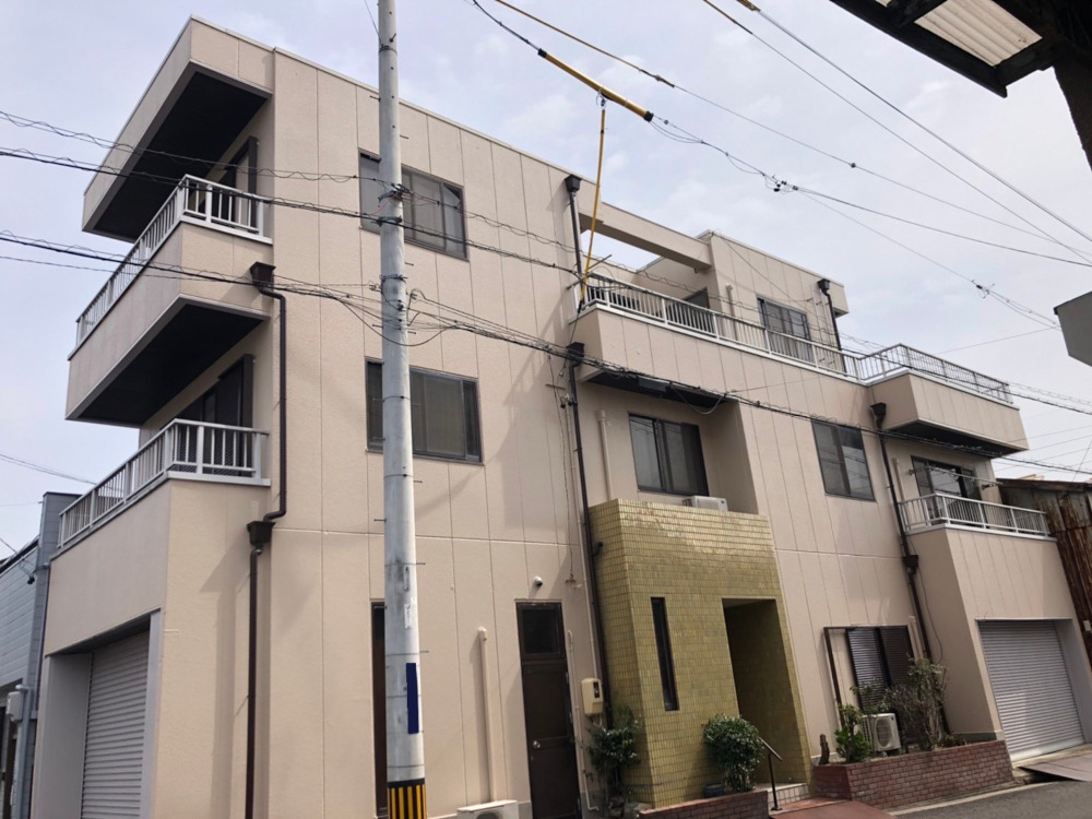 駅近くにある人通りも多い大通り沿いに面した3階建てALCのお住まい様です。建ててから20年以上一度も全体的なメンテナンスはしたことがなく部分的な補修を施主様自身がされていました。建築関係の現場管理のお仕事をされており、使う塗料や管理体制を気に入って頂きお任せ頂けました。
