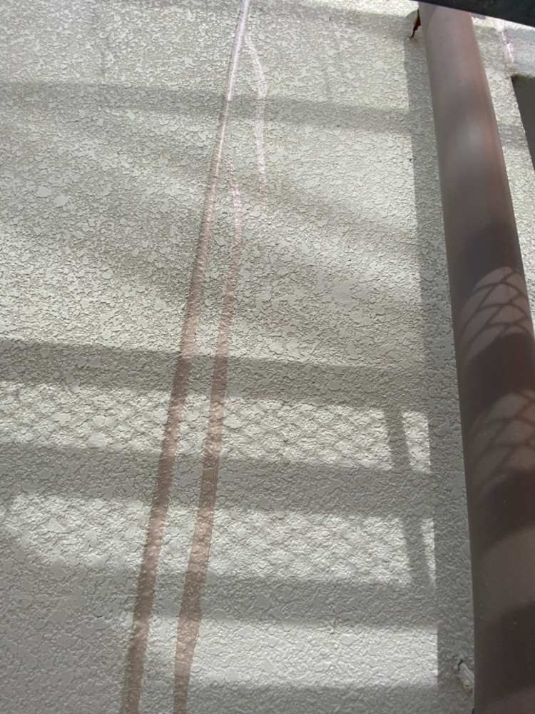 全体的に広い範囲で塗膜では埋まりきらないひび割れが目立ってました。ALCは建材自体には防水性がないため、ひび割れがあればそこからスポンジのように水を吸ってしまいます。プライマーを塗布して、シーリングとの密着を良くしてから補修をおこないます。