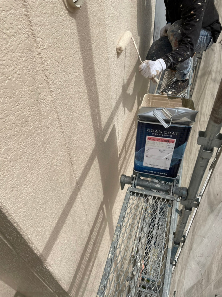 上塗り塗料は、下塗り塗料や下地を紫外線、風雨、カビや藻等から守る効果をもたらします。ALC外壁の仕上がりや今後の美観の保持もこの上塗り作業で決まるので、とても重要な作業と言えます。特にALC は塗装で防水しているため、塗り忘れや色透け・塗料ダレ等ないよう慎重な塗装が必要になります。