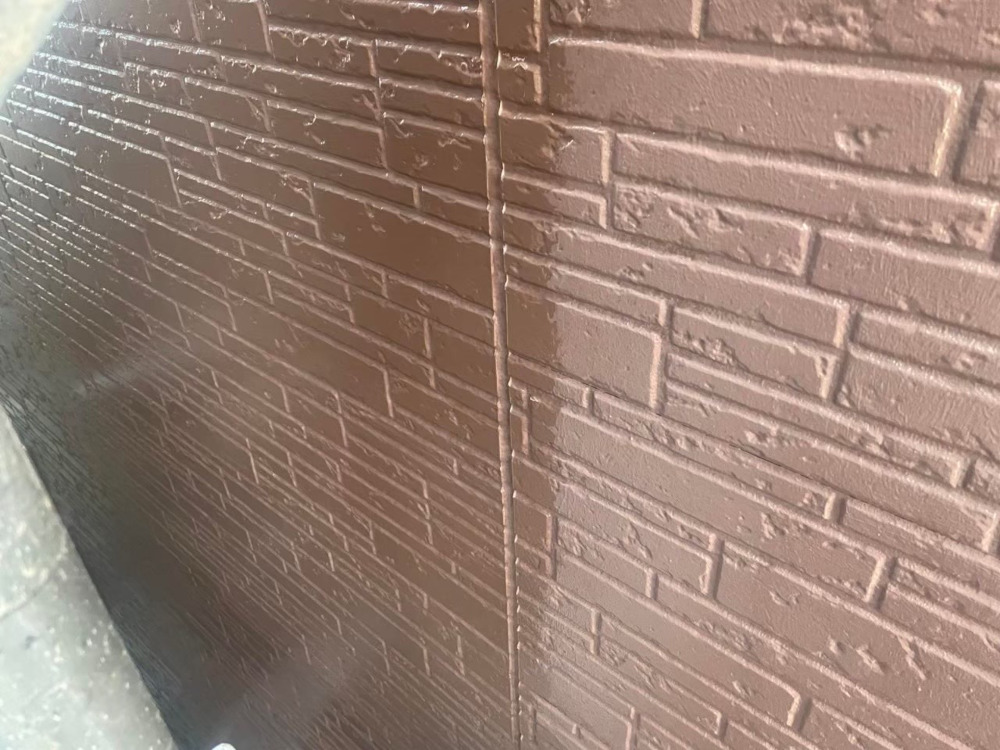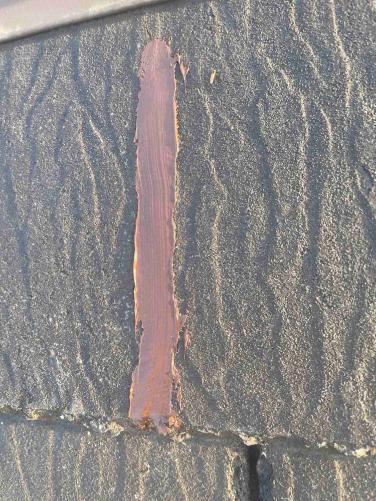 屋根材のスレート瓦や外壁材のサイディングボードはお住まいの建付けによって窓回りに亀裂が出ることがございます。窓回りなどは放っておくと雨漏れの心配にも繋がる箇所ですので、亀裂はコーキングで補修した後、塗装していきました。