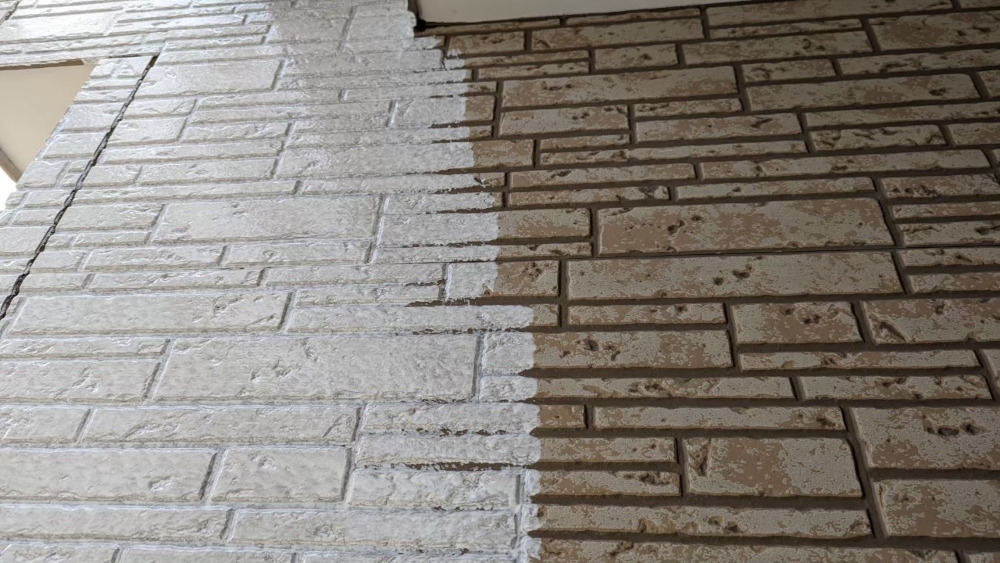 下塗り材料は外壁塗装をする上で壁と塗料が直接密着する重要な工程となります。そして外壁下塗りの工程で均一に塗装ができなければ中塗り、上塗りの際も均一に塗布できなくなり仕上がりも悪くなります。今回の下塗り材は乾燥すると透明になる為、塗り残しがないよう気をつけて塗りました。