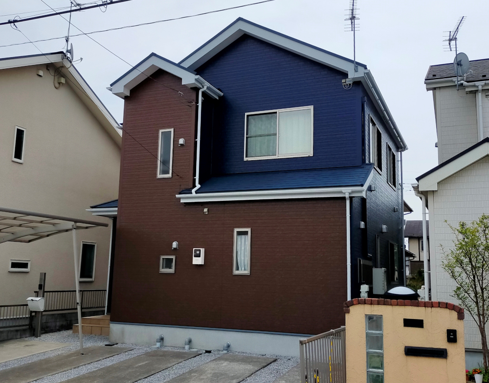外壁の上塗りは塗りムラが出ないように塗膜の厚みを均一に保つこと、上塗りの膜厚がしっかりと付くようにすることを意識しました。また、塗り残しなどがないように作業毎に確認作業も入念に行いました。外壁の色も変わったのでお住まいの印象がかなり変わったと思います。