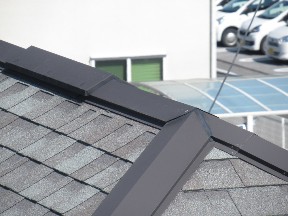 屋根は紫外線にさらされて高温になる場所なので、シーリングも傷みやすいです。屋根材の隙間にシーリングが敷設させていますが、今回はひび割れしていました。もともとのシール材は撤去して新しくシーリング材を打ち込み水の侵入を防ぐ、止水作業を行いました。