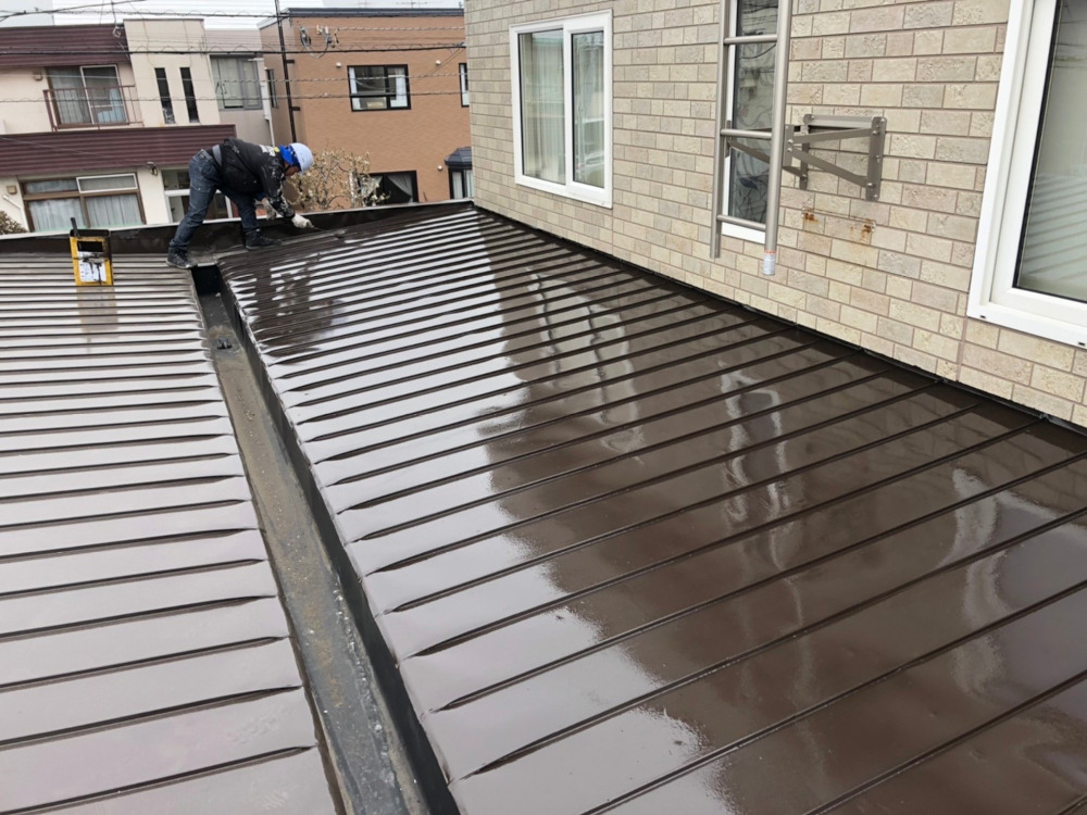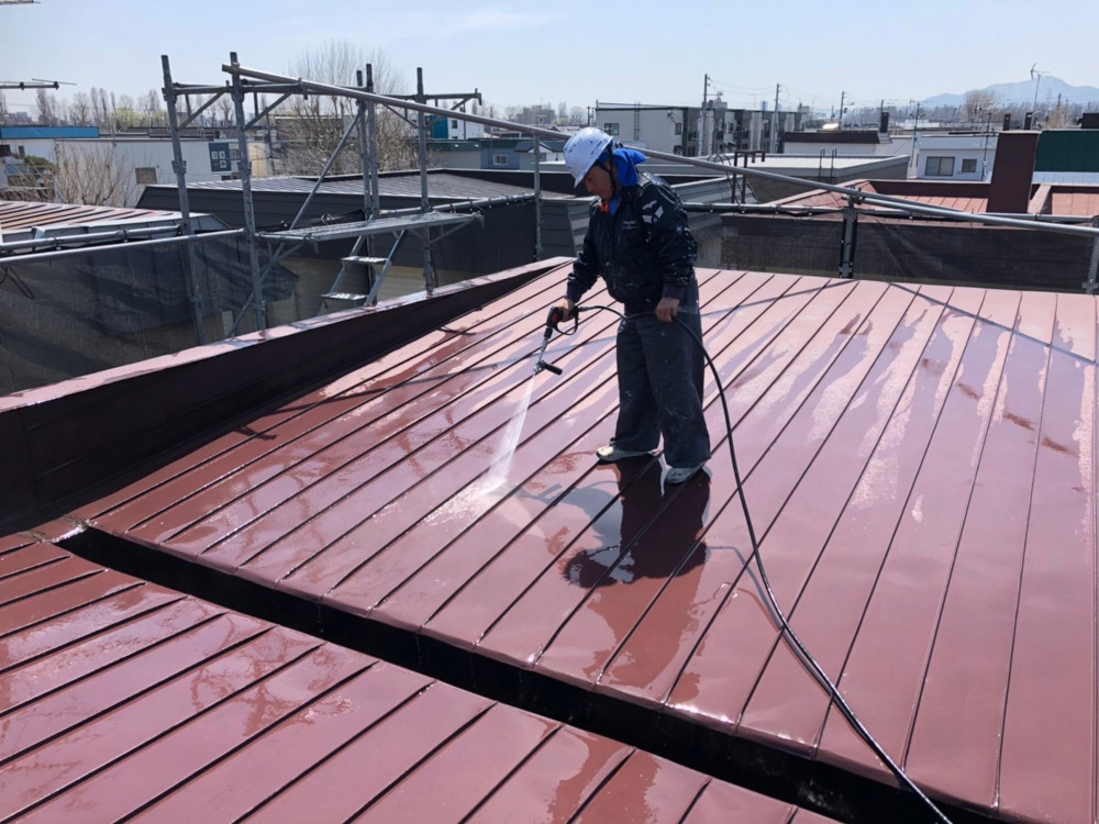 塗装工事を行う際には屋根、外壁洗浄が行き届いていないと、屋根、外壁塗装を行っても塗料の効果性が高まらず、屋根、外壁塗装をした時に色ムラの原因にもなります。今回のお住まいは、凹凸のあるサイディング外壁だったので、入念に洗浄をし、塗装前の準備をしっかりとしました。