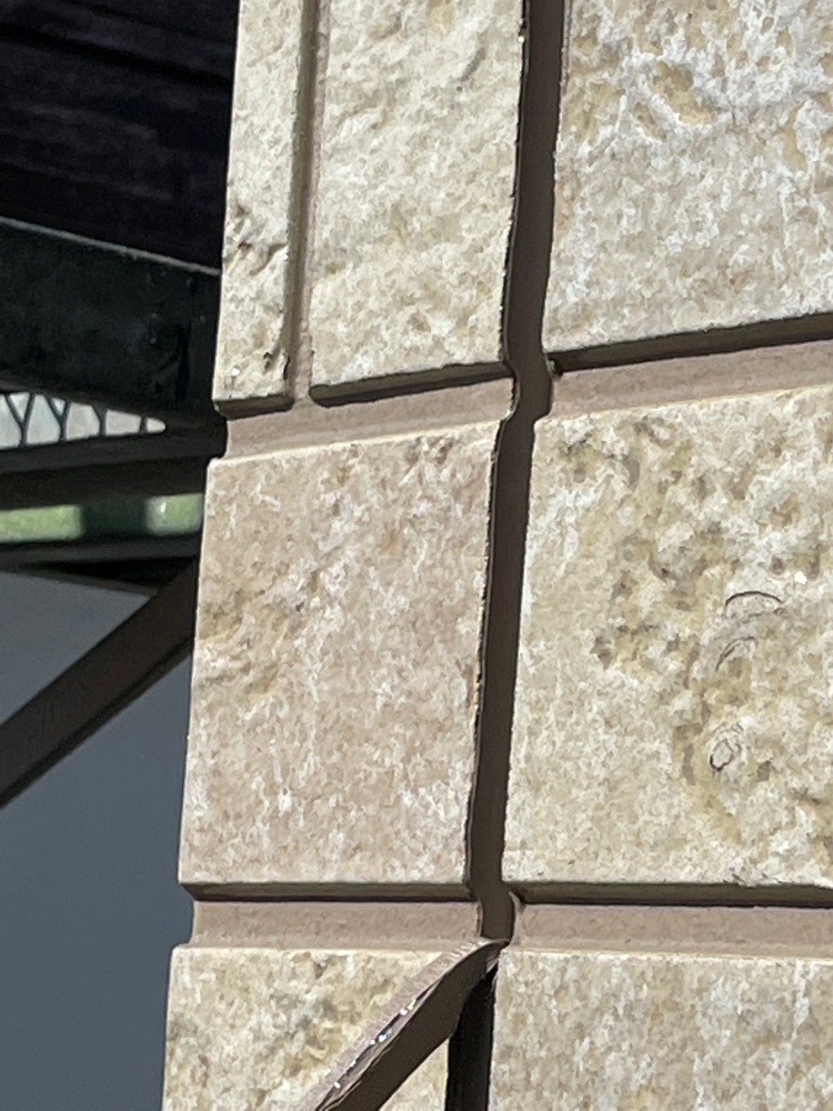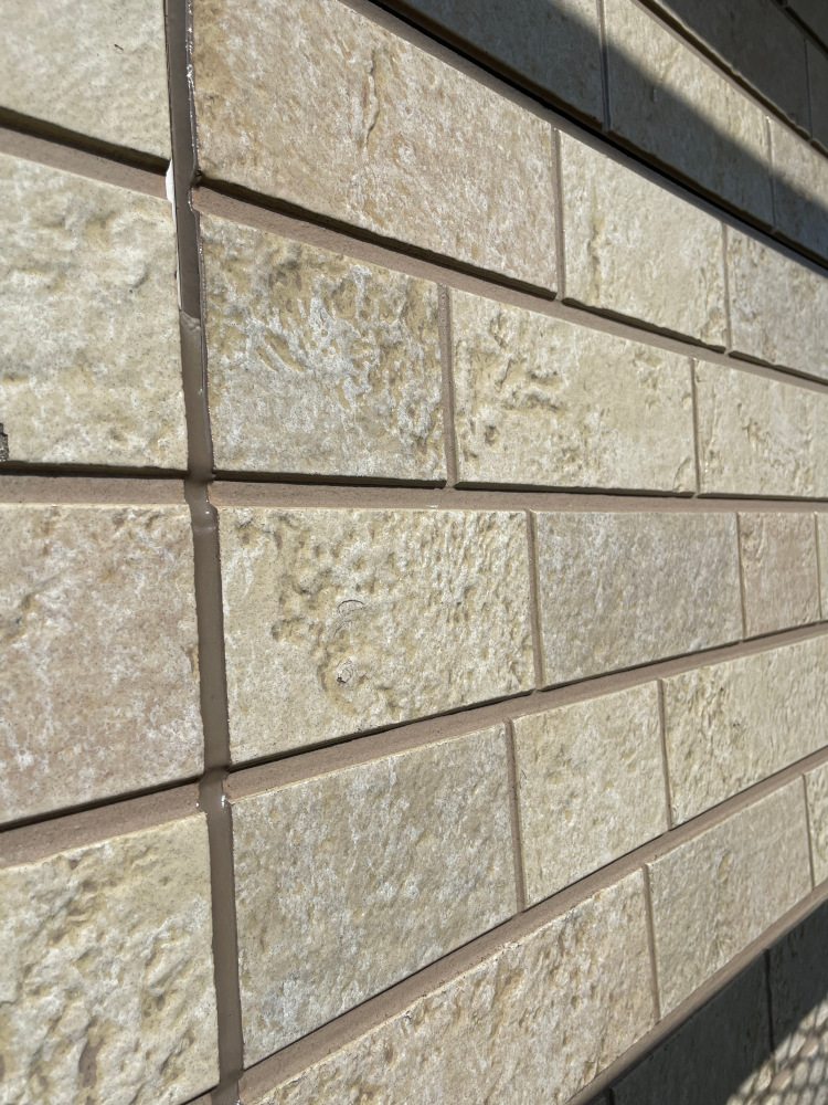 コーキング部分をチェックしたところ、経年劣化により亀裂が出ている部分もありました。劣化したシーリングを綺麗に剥がし、シーリングが密着するようにプライマーをしっかりと塗りました。綺麗に塗装した外壁にシーリングがはみ出さないよう、また表面の統一感を作る為に、仕上げにハケを使いライン出しをしました。