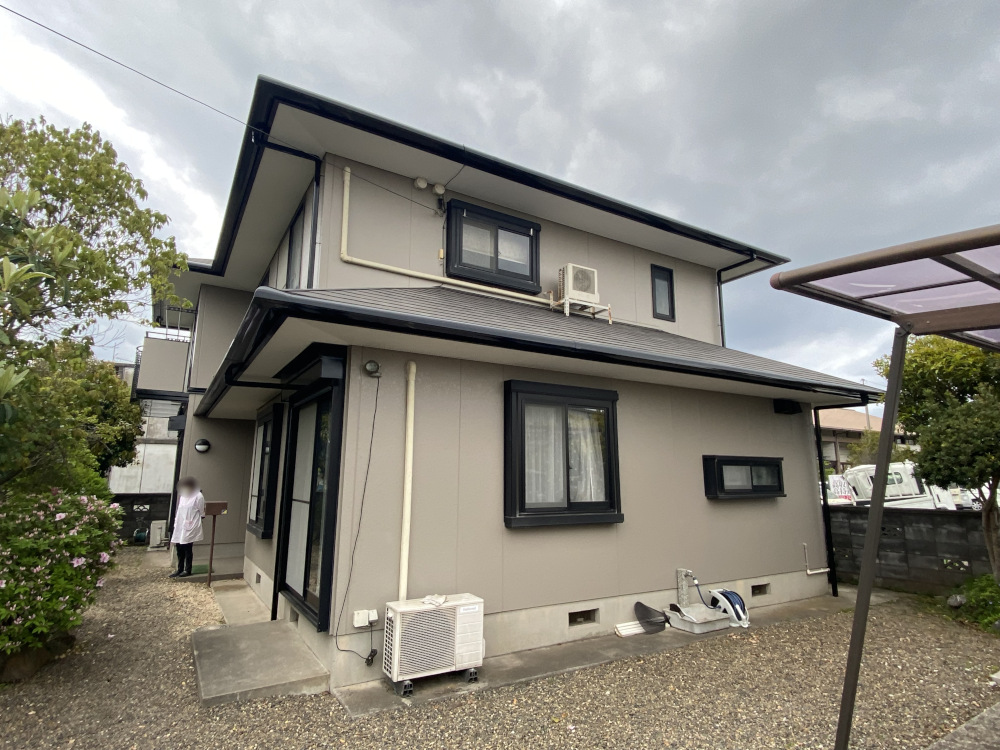 外壁塗料にフッソ系の塗料を使い、15年の保証をつけております。塗りムラや塗り残しが無いか、一つひとつの工程で確認しています。仕上げはコーティングの意味を込めて膜厚を均一にし、美観と耐久性がもつように心を込めて作業しました。