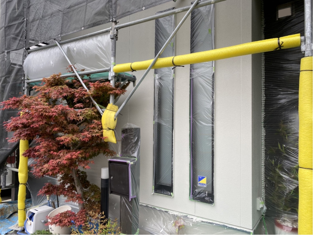 足場設置後、施主様生活するにあたり、接触した場合ケガをされるような突起箇所がないかを確認します。安全帯やクッション、トラテープなどで注意喚起をし、安心安全に暮らしていただけるようにいたします。