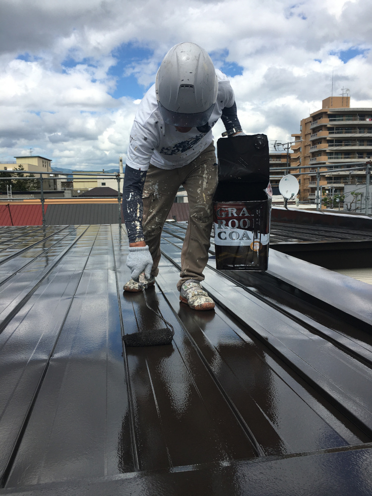 屋根の上塗りは塗りムラが出ないように塗膜の厚みを均一に保つこと、上塗りの膜厚がしっかりと付くようにすることを意識しました。また、塗り残しなどがないように作業毎に確認作業も入念に行