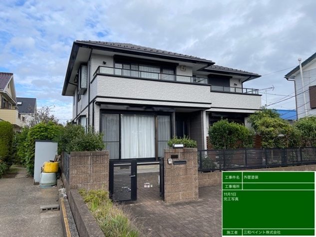 色褪せ等、年数なりのお傷みが見受けられたので、建材にしっかり浸透するように念入りに作業を行いました。この下塗をしっかり入れることで中塗り・上塗りの効果を性能通り発揮することが出来ます。
