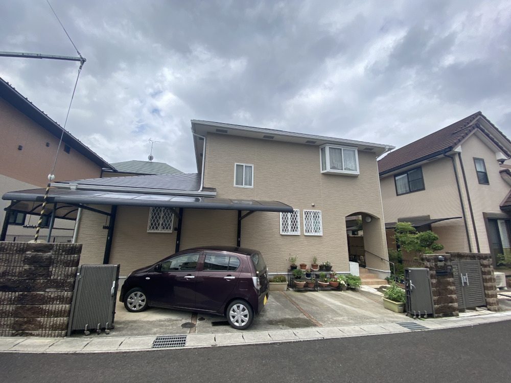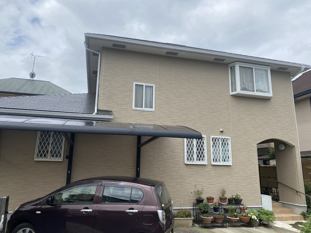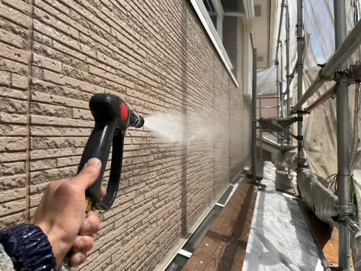 高圧洗浄をしました。理由としては、高圧洗浄をしっかりしないと、汚れが、塗料の密着性や効果性の邪魔をして、いい塗装工事ができないので、まずは、高圧洗浄でチリやホコリをしっかりと落とすことが大切な作業だからです。