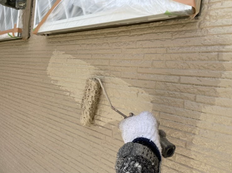 上塗りをしました。理由としては、中塗りを塗ってさらにもう一度同じ物を塗ることによって、塗膜に厚みが増しより紫外線や雨水をはじくようになるからです。