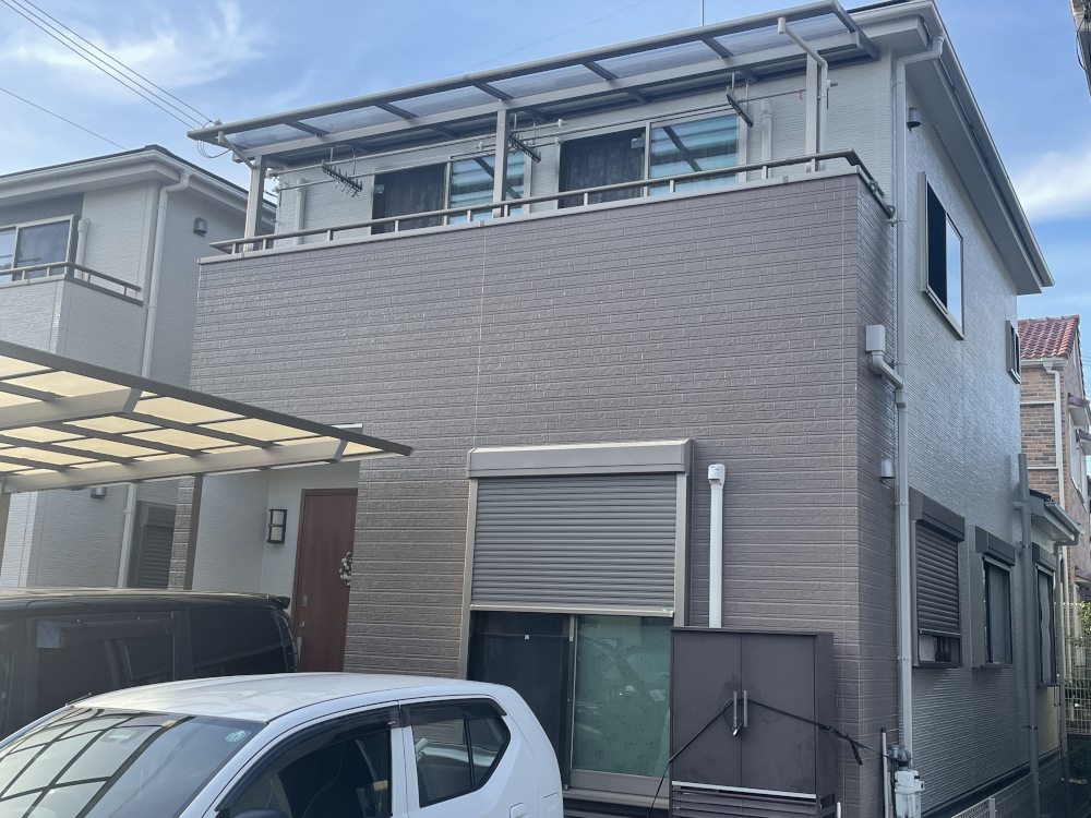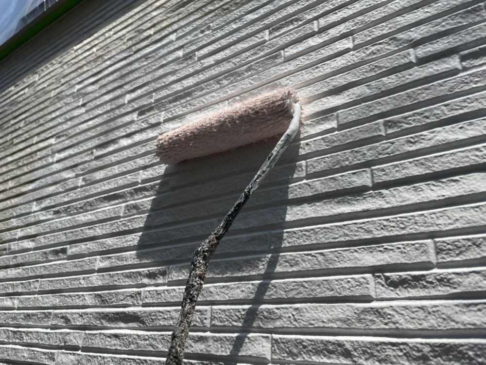 経年劣化で外壁表面にクラックが生じていたため、下地に浸透させるように入念に下塗り作業を行いました。下塗りをきちんと入れることで、塗装の効果がしっかり得られます。