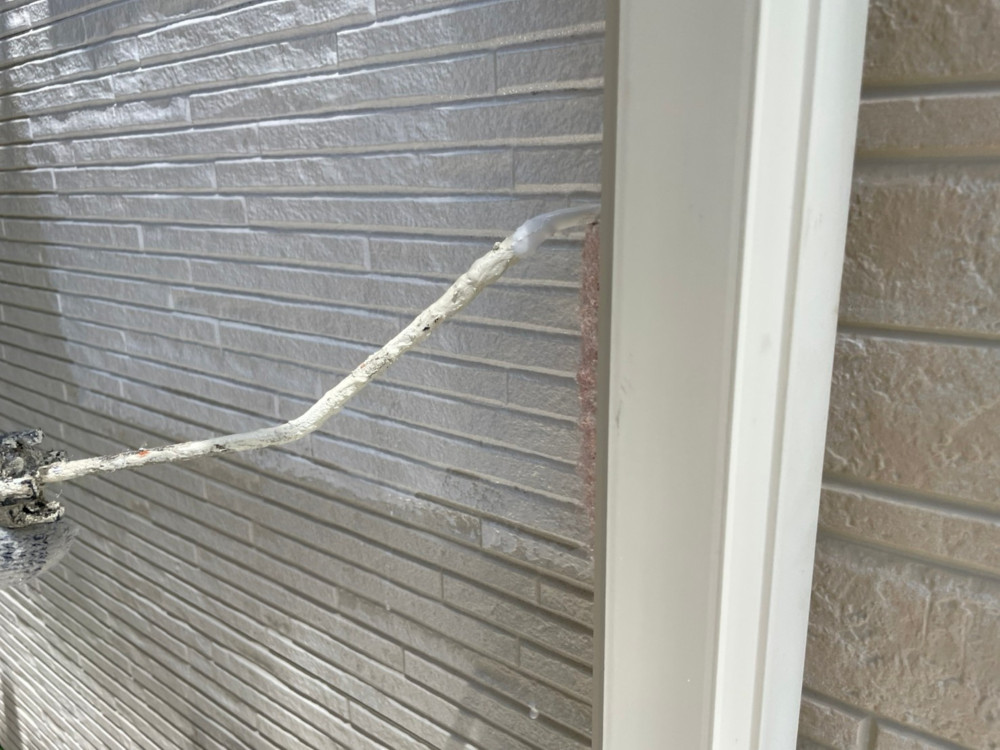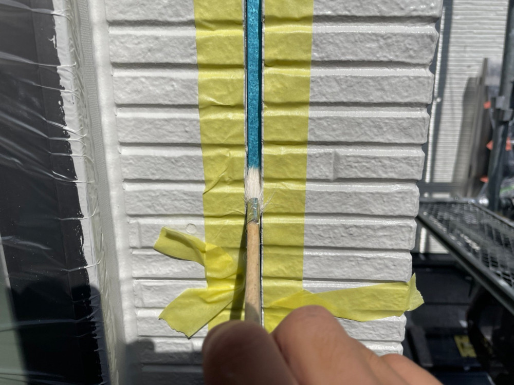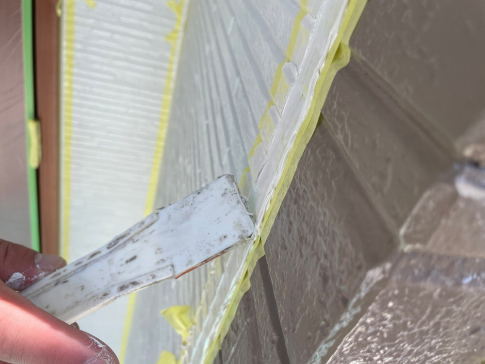 縦のコーキングは基本的にきれいに撤去すること。壁に凹凸があるため、マスキングテープを凹凸部分にも入念に押し込んで、きれいな仕上がりになるよう心掛けた。