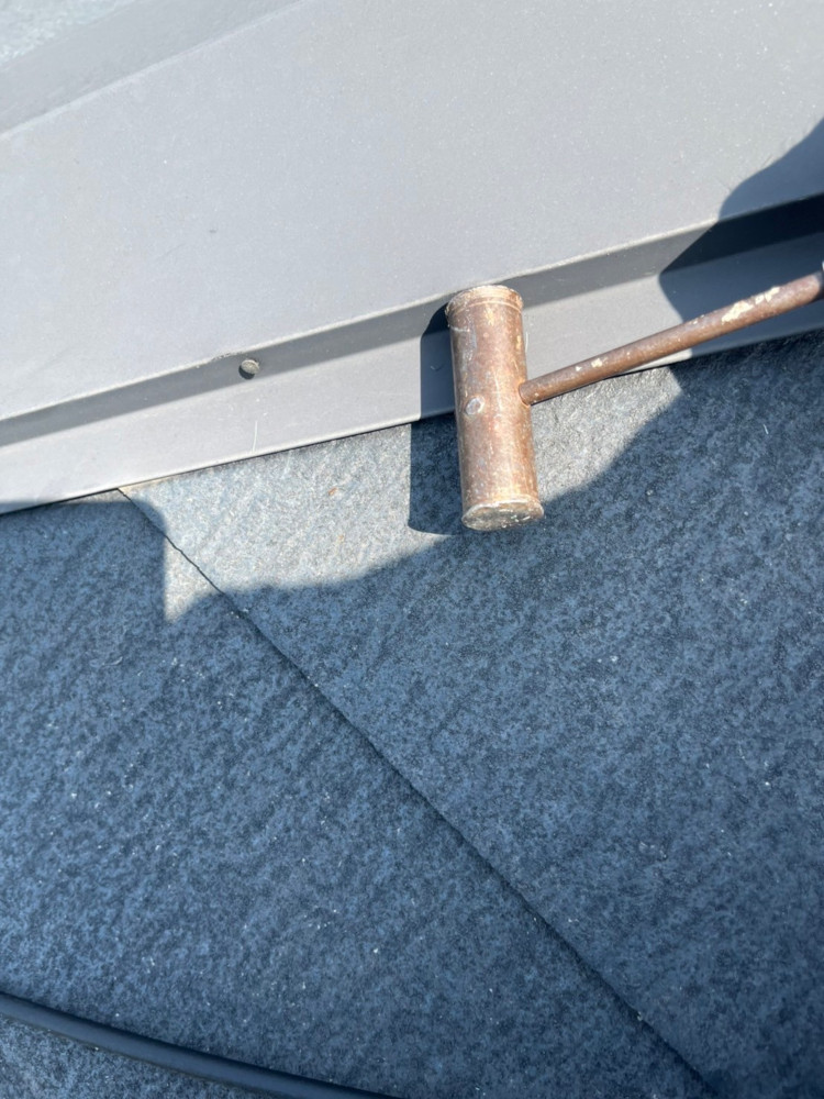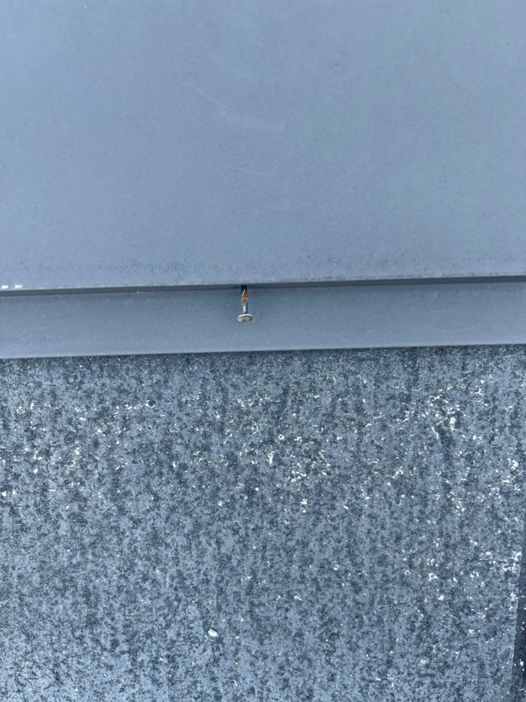 屋根板金は釘で固定されていますが、釘が抜けてしまうと板金の中に水が回ってしまう可能性があるので、釘の頭が出ている箇所はトンカチで補修をしました。