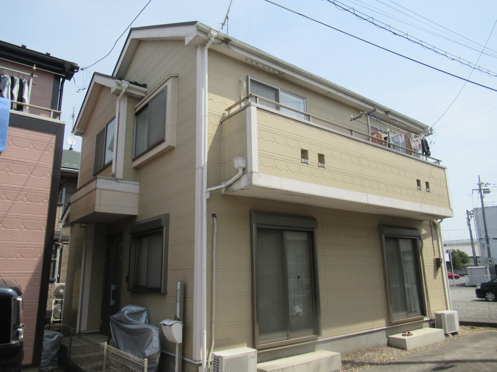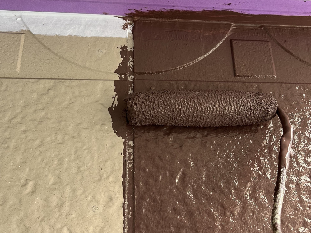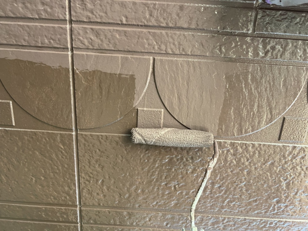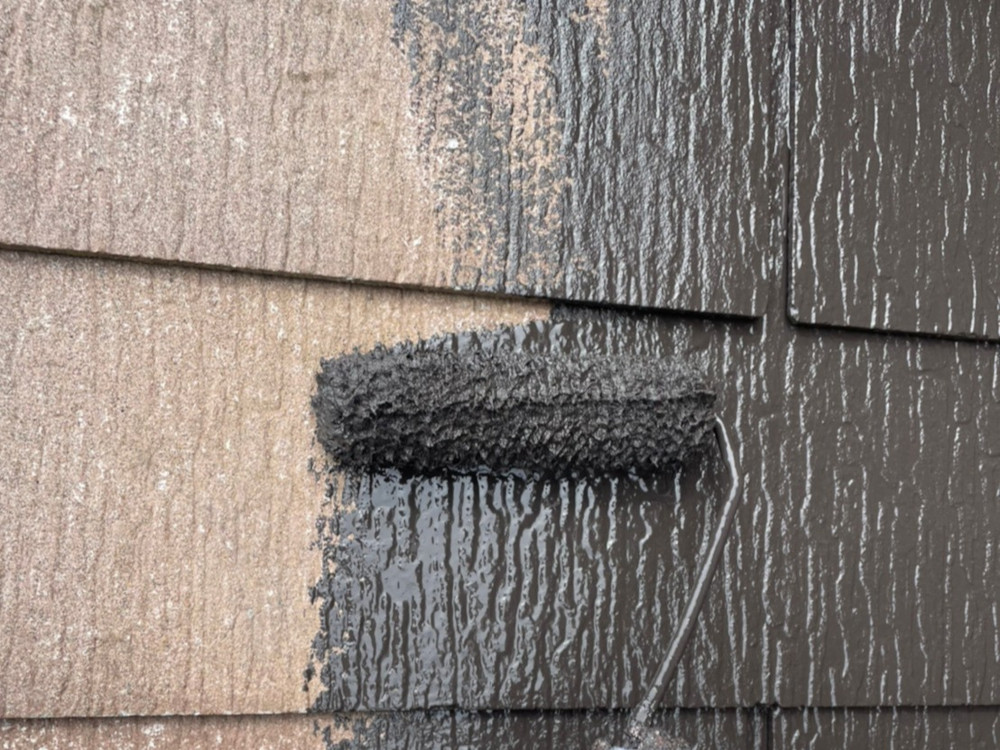外壁と付帯物(雨樋や軒天井など)のライン取りを行ってから、ローラーで全体塗装を行いました。全体の塗装工程は色ムラが発生しないように2重チェックを行い、丁寧な施工を行いました。