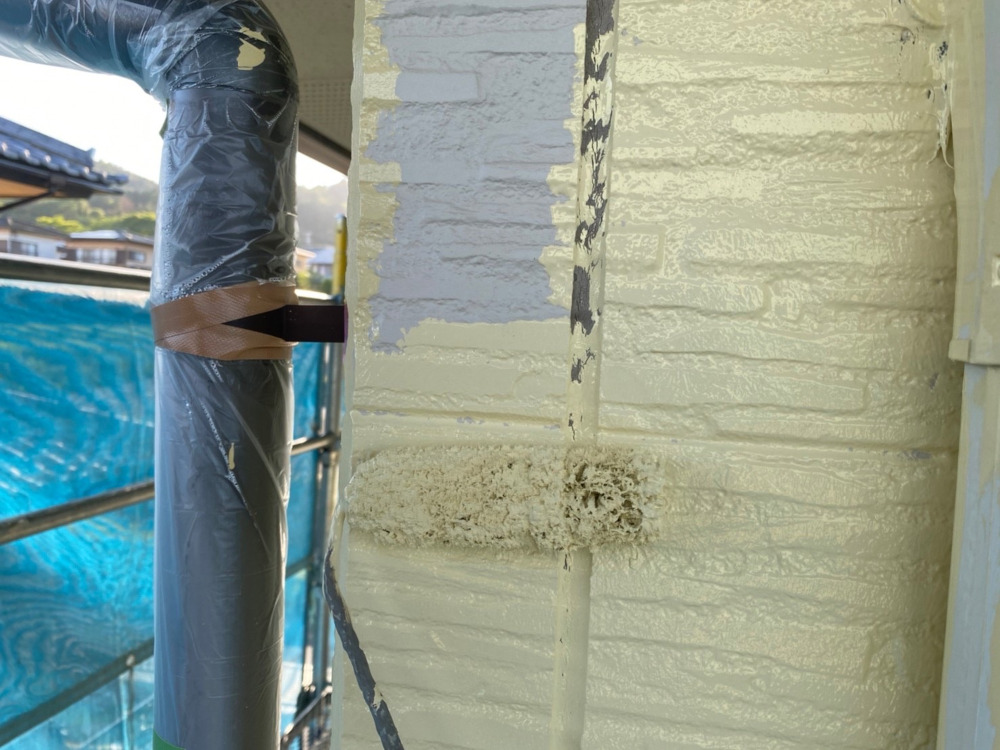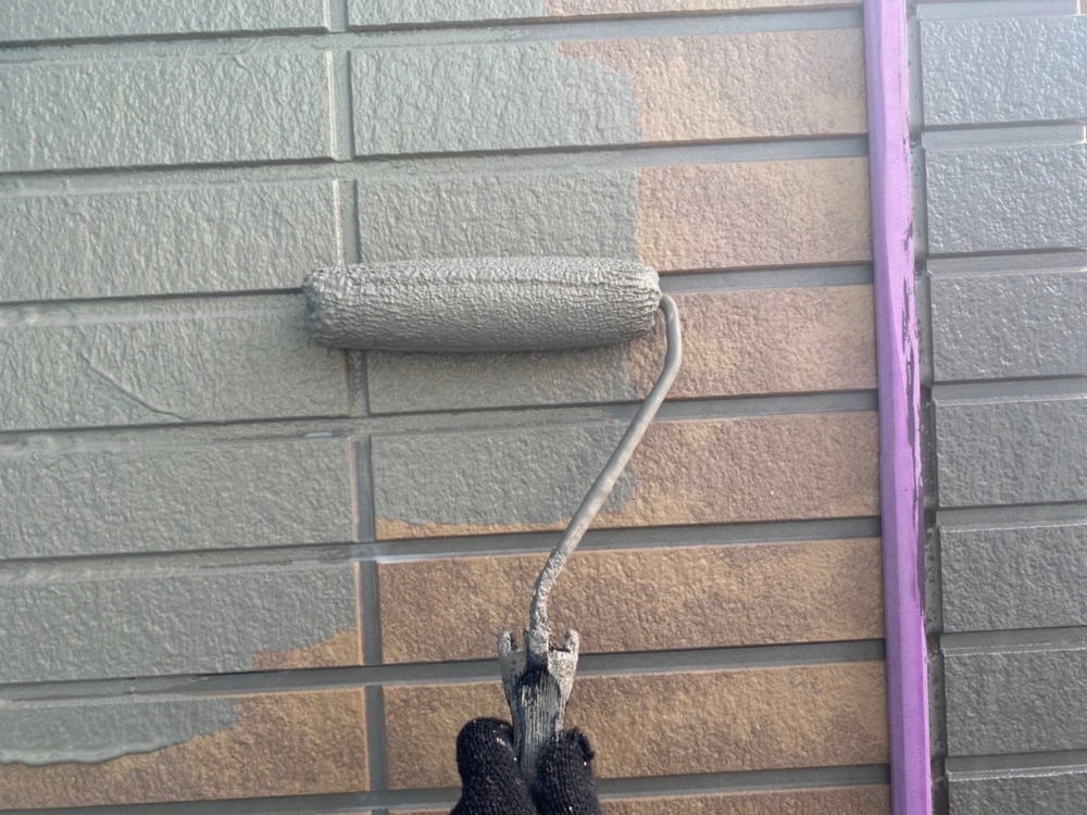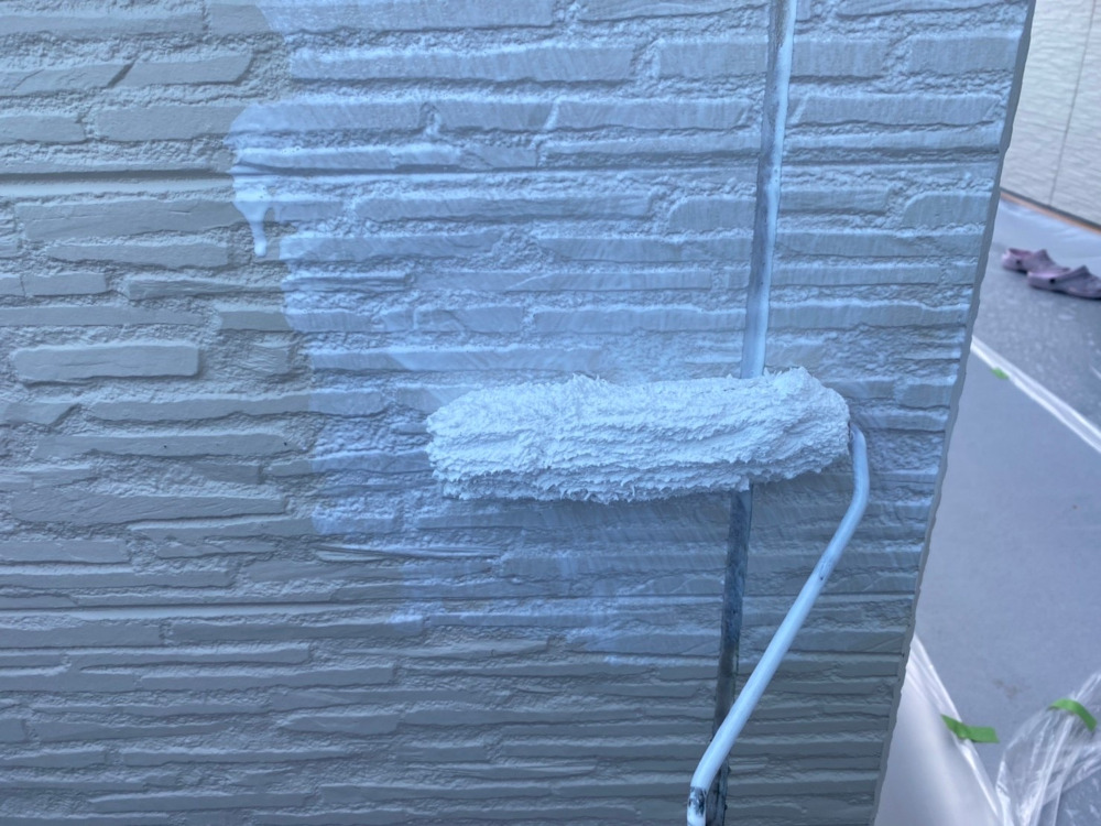 しっかりと外壁につくように、優しく、丁寧に仕上げました。下塗りは再生強化していくものなので、より時間をかけて施工を行いました。