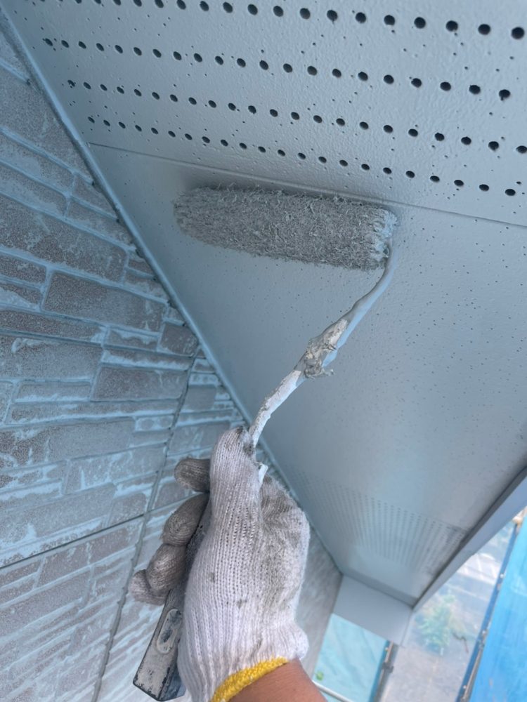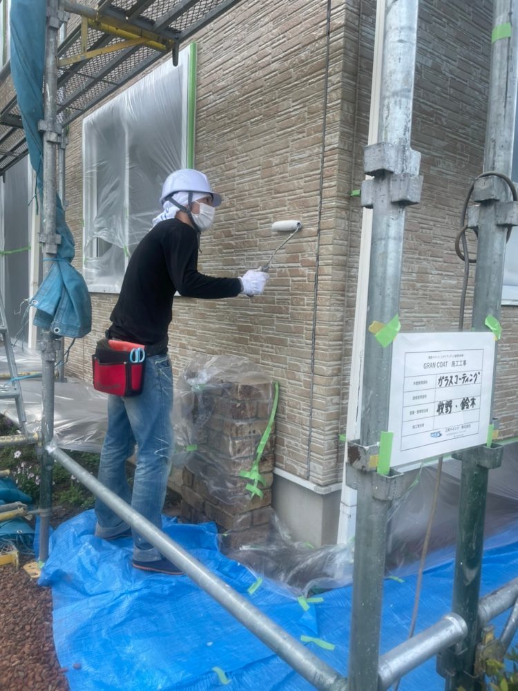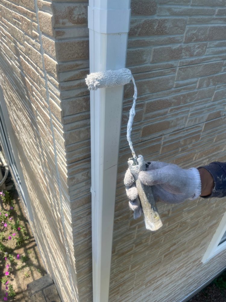 初夏の時期や凹凸の多い外壁の場合かなり高確率で気泡が出てしまいます。材料も少量ずつ計りで作ったり、短毛ルーラーと刷毛を自在につかうことで、施工注意事項の気泡を発生することなく工事できたこと安心しました。また南面の壁は北面に比べ色褪せが進行しているため、チェック塗装を試みて全体の塗装をしました。予想してたよりは上手く仕上がったので施主様も喜んでおられました。
