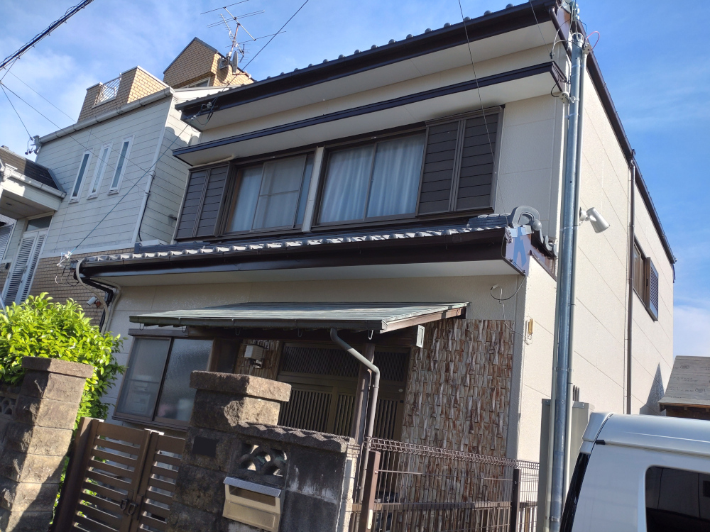 前回より少し明るめの外壁のお色を選ばれたので、白色だった雨樋の色をサッシや付帯に合わせて黒色にご提案。全体が引き締まった印象になりご主人様も気に入って頂けました。