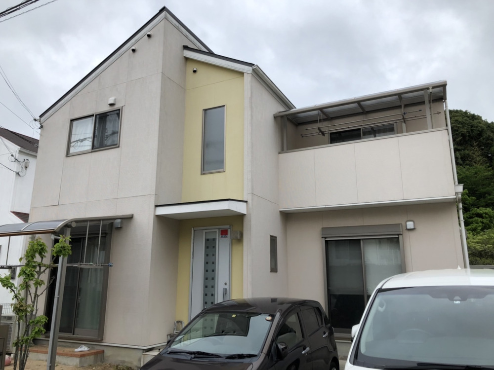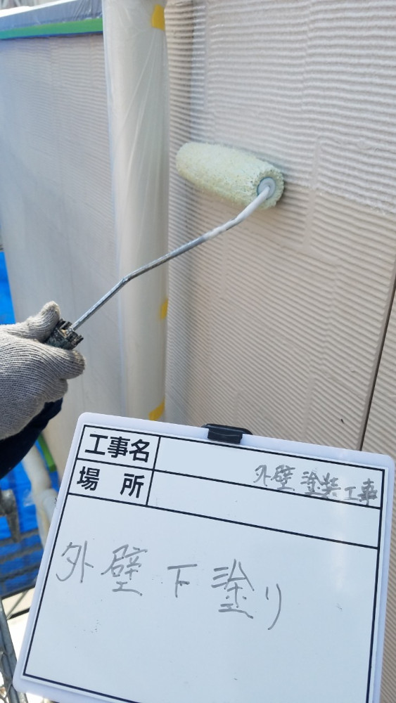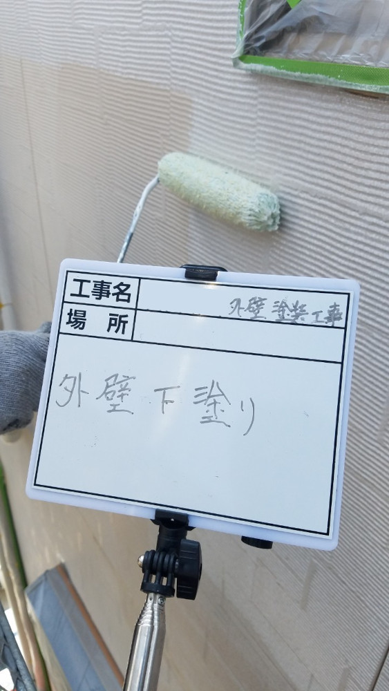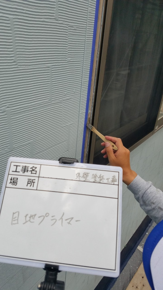 一般的には先打ちが多いコーキング工事ですが、どうしてもコーキング上の塗膜が先に割れてしまうため、化粧打ちを推奨しています。しかし化粧打ちにも注意が必要で、一度塗り上げた外壁に養生テープを貼っていくので、一度塗られた塗膜がはがれてしまうことがあります。手間はかかりますがお客様に長くキレイなお住まいを楽しんで頂くためのひとつの方法です。