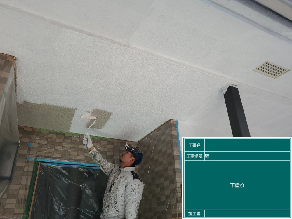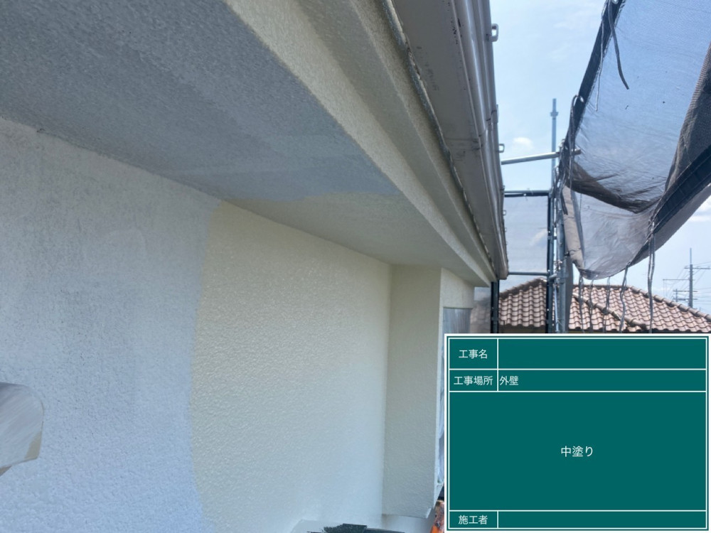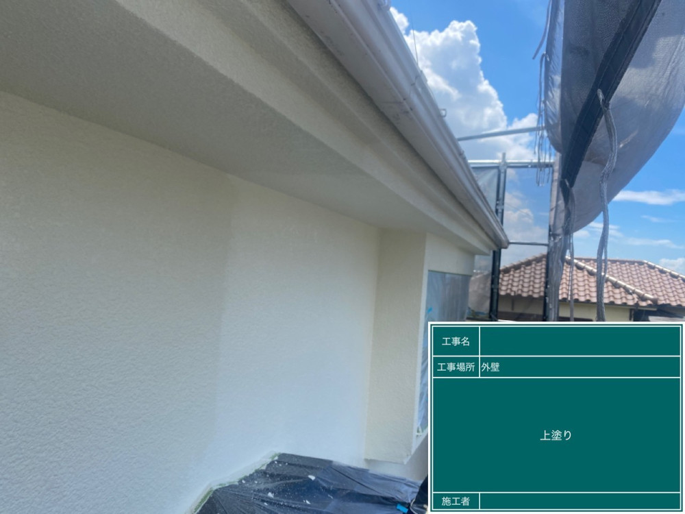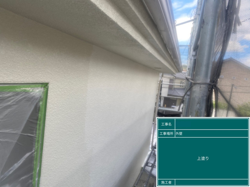 下塗りは、セラミック塗装をされてたので、セラミック(骨材)専用の水性クラフトを使い、中塗り上塗りはラジカル制御のシリコンを使用しました。