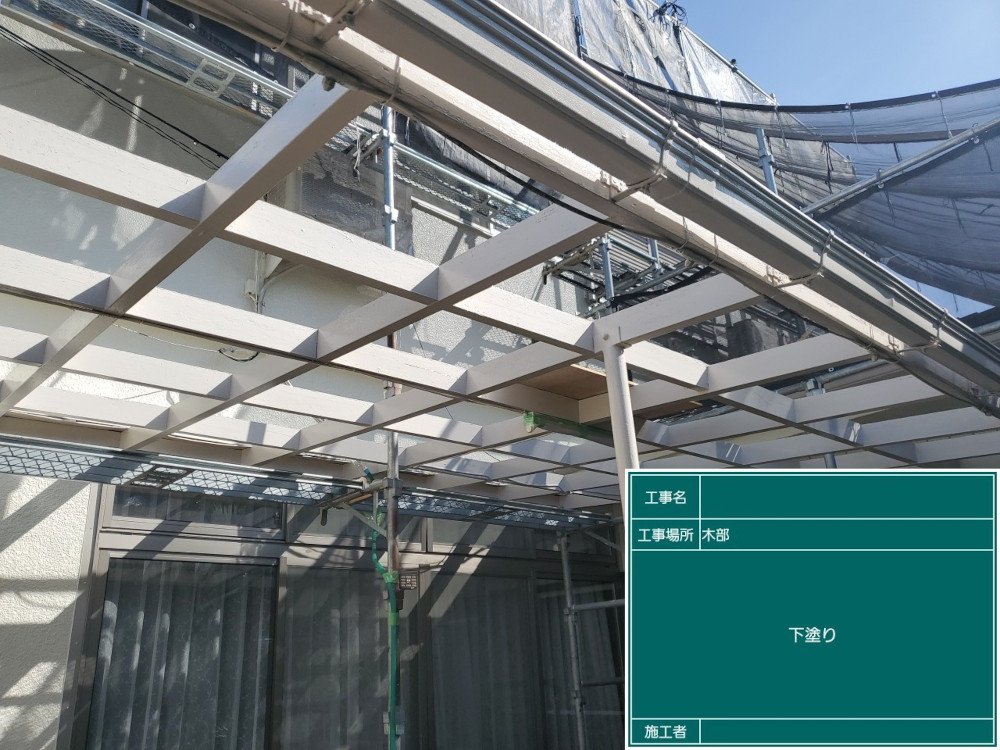 軒天井 、 破風板 、 雨樋 、 戸袋 、 塀(ブロック塀) 、 玄関天井 、 玄関柱 、 雨戸 、 木部塗装