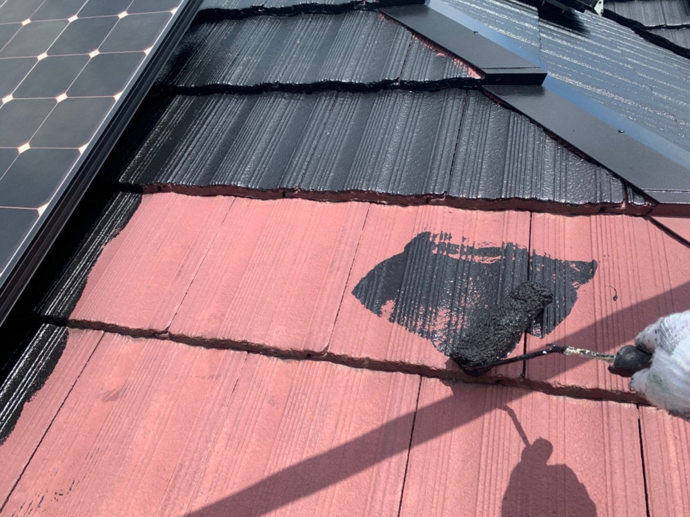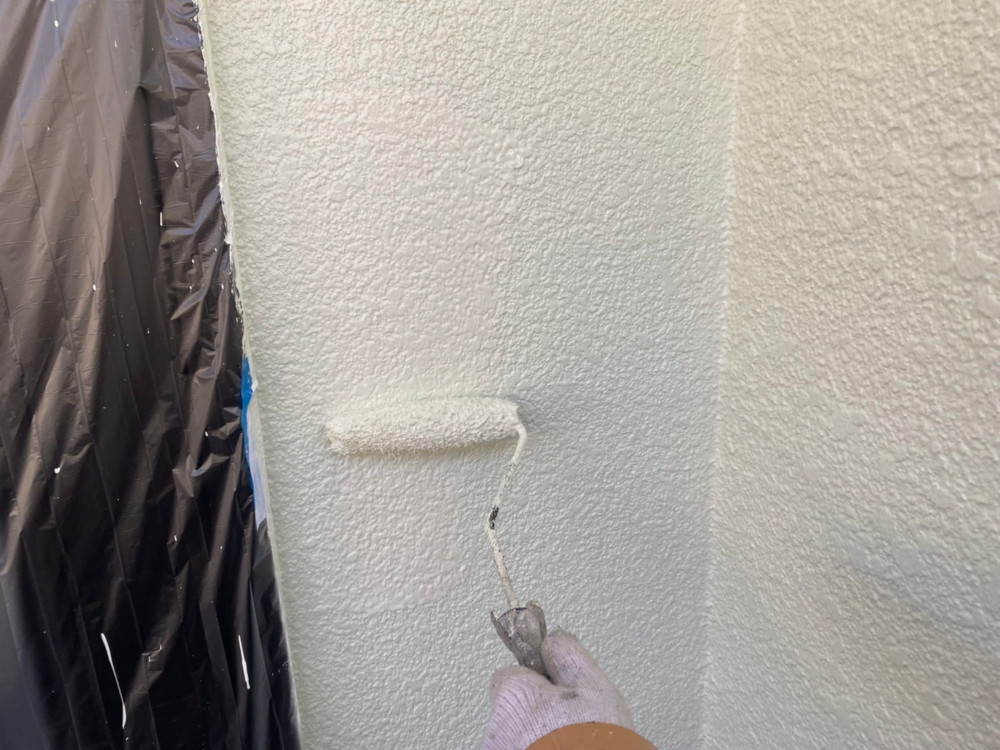 下塗りから手塗りのローラーを押し込んで下地の防水と亀裂補修を行いました。亀裂補修はコーキングを押し込み亀裂を防ぎました。