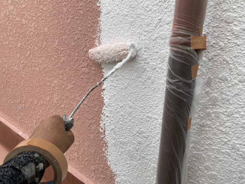角地でかなり旧塗膜が傷んでいたので、下塗りをしっかりと押し込むように職人に伝え、とにかく下塗りを丁寧に塗ることを行いました。