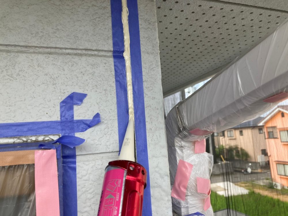 7月の施工ということで、気温が30度を超える日がほとんどでした。その為、シールを打った後すぐ乾燥してしまうので、日陰の面から仕上げていきました。