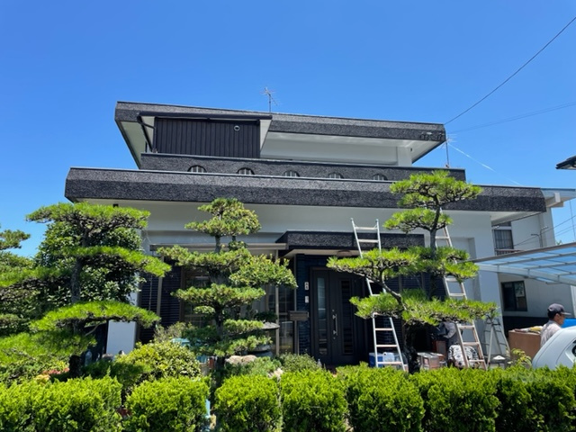 トタンの表面がかなり錆びていたので念入りにケレンを行いました。端部は薄いので神経を使いましたが、問題なく完了しました。その後錆止めを塗り、専用塗料で仕上げました。