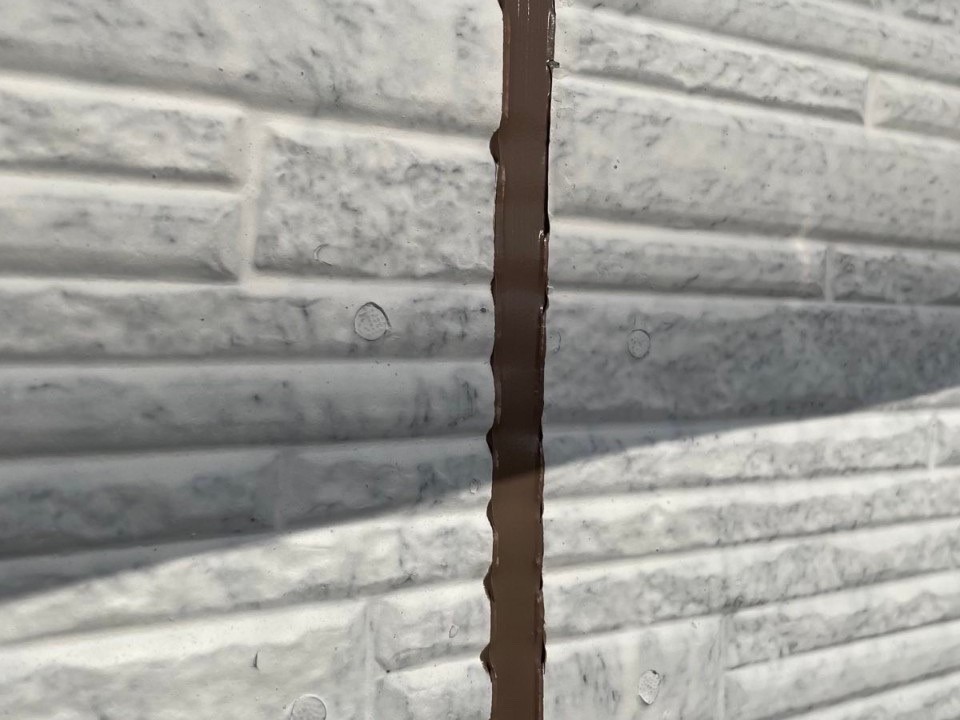 竪目地のコーキングは既存の物を撤去し、新しくコーキング打ち替えました。窓回りなどは撤去せずに上から新しいコーキング増し打ちしました。