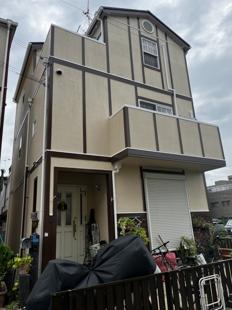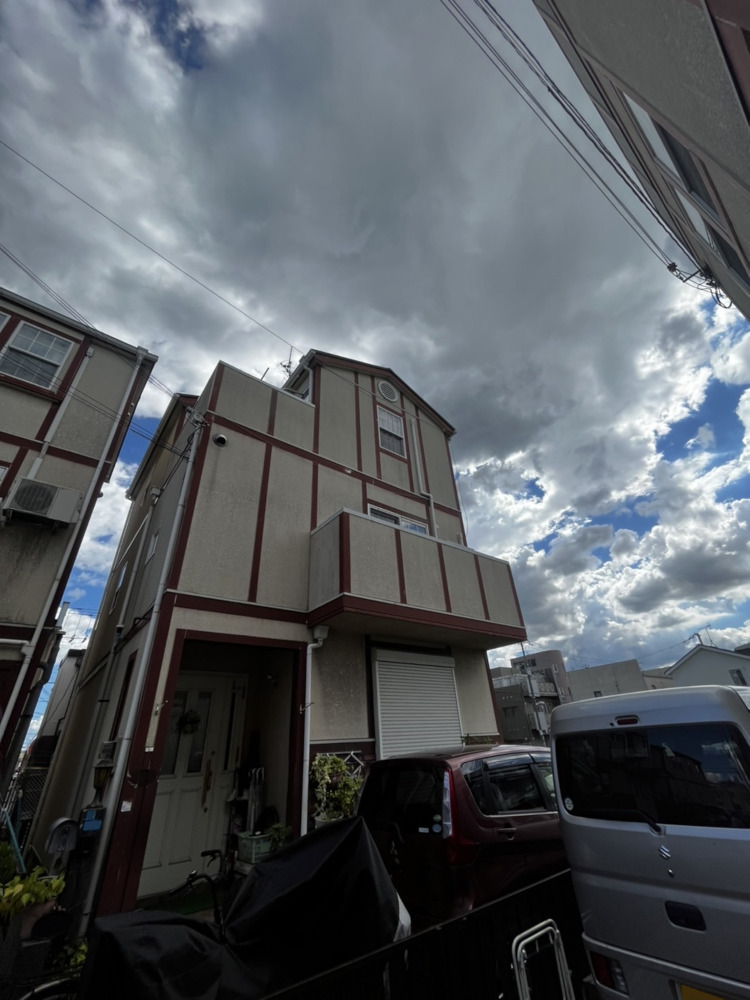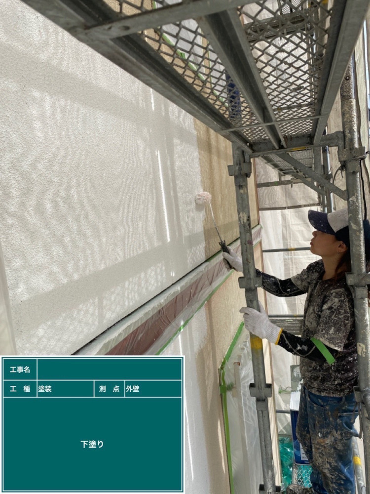 ヘアークラックなど細かいひび割れがあり、そこを補強するためにも、ひび割れにも入っていくように押し込みながら手塗りをすることで細かいひび割れの中まで入っていき、より壁、塗装が長持ちするように心を込めて施工をいたしました。
