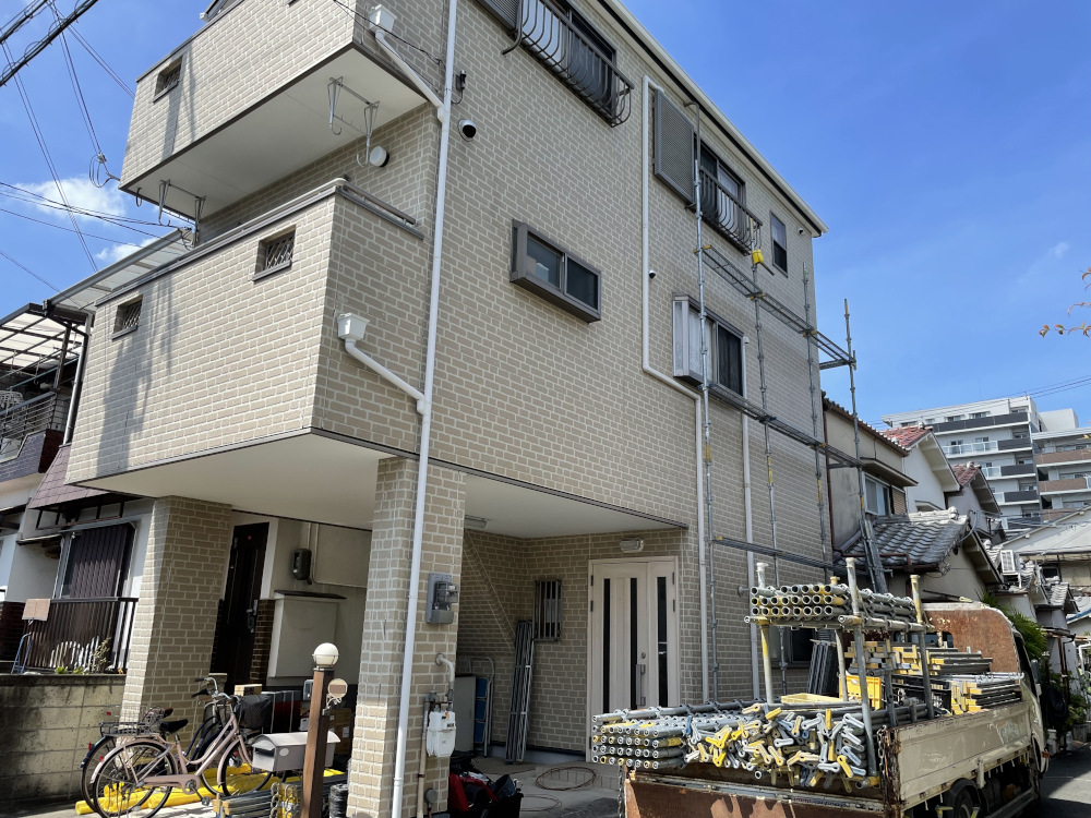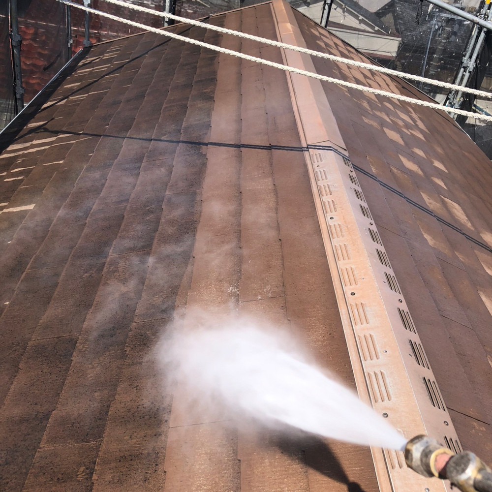 壁、屋根、ベランダなど普段ではなかなか洗うことがないので、高圧洗浄を使い、汚れを隅々まで落としていきました。結果綺麗なまま塗装できました。